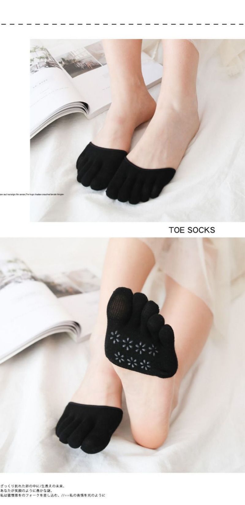 Made of 100% cotton for sweat absorption, foot partitions to reduce pressure on the soles, and anti-skid design!