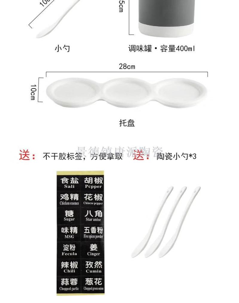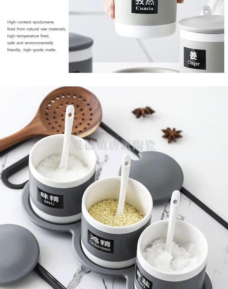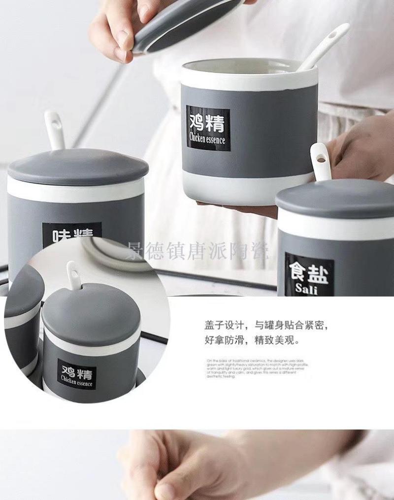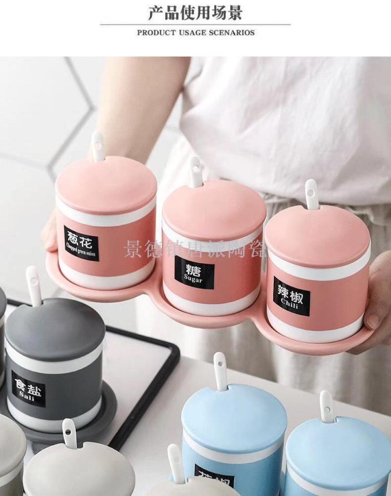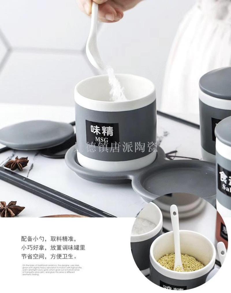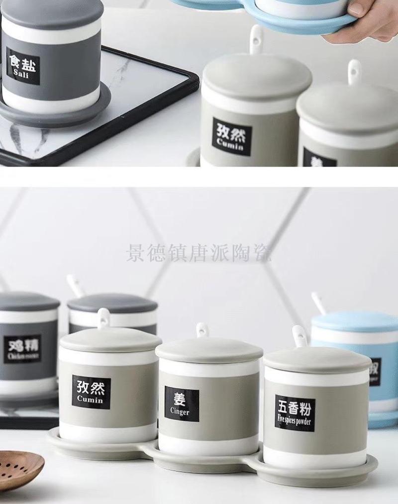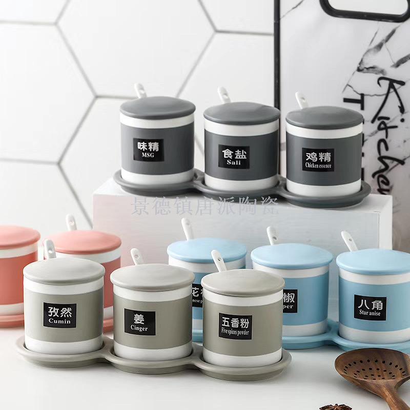 new jingdezhen ceramic bone china seasoning jar four-piece straight seasoning jar set four with rack kitchen supplies household