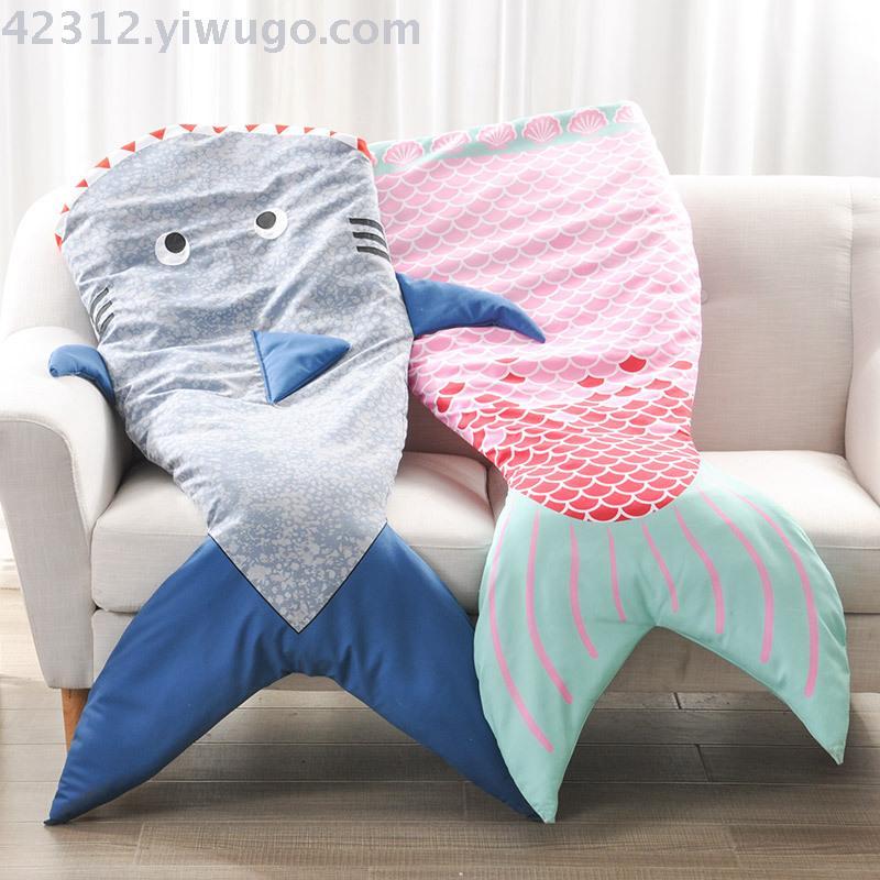 winter thickened three-layer mermaid blanket coral fleece feeding cotton shark blanket custom 55 * 142cm