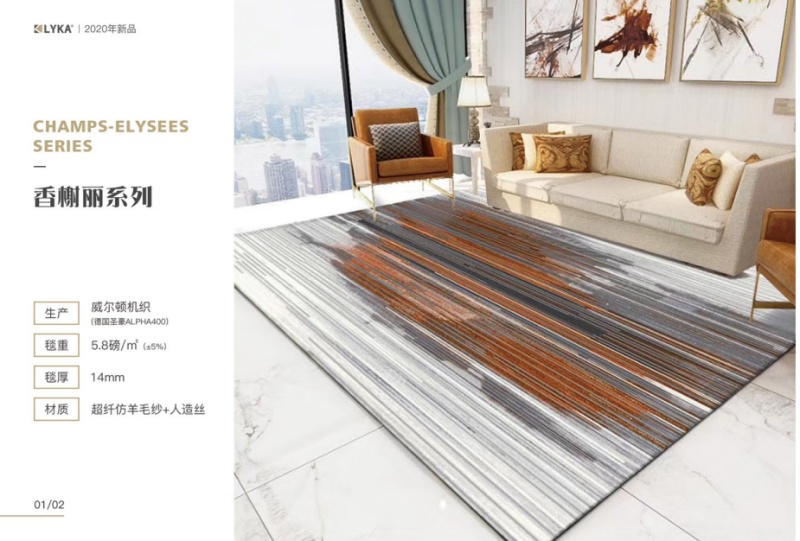 【Product Knowledge】: Rugs are made by weaving ultra-fibre imitation wool yarn and artificial silk through Wilton machines. It is one of the traditional craft categories with a long history worldwide. Covering living rooms, bedrooms, etc., they have the effects of reducing noise, insulating and decorating.