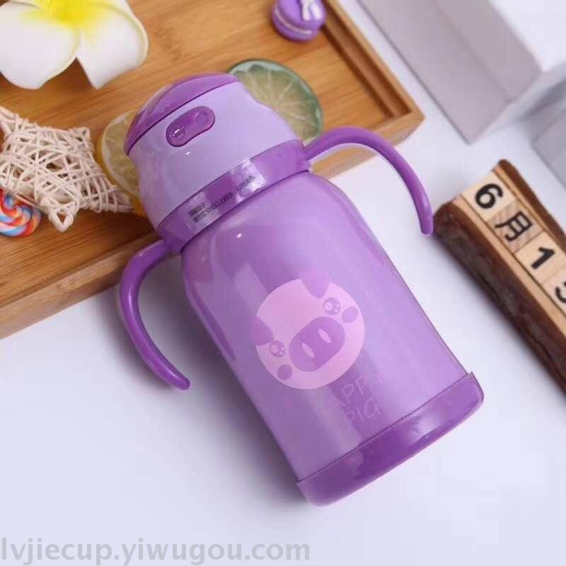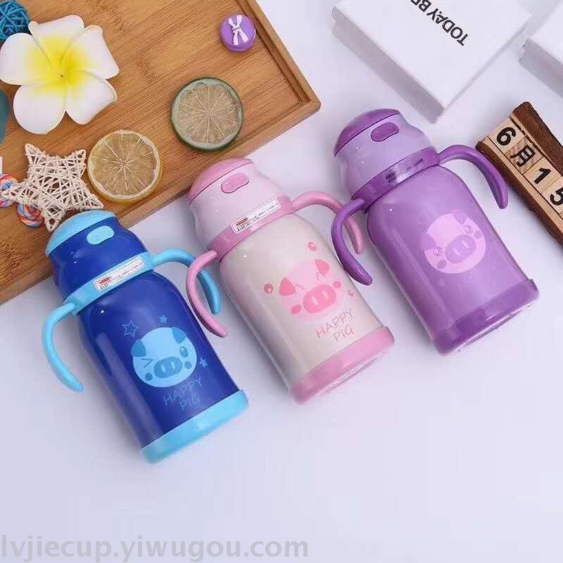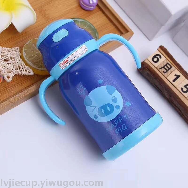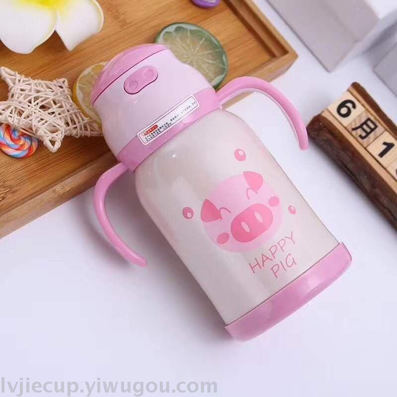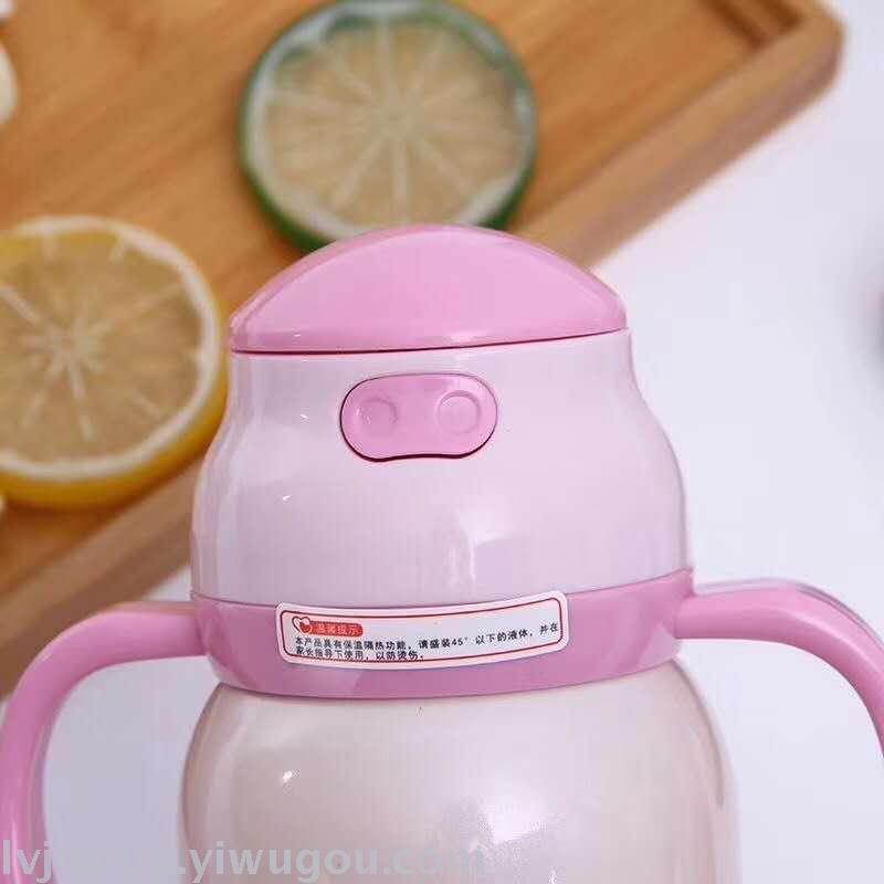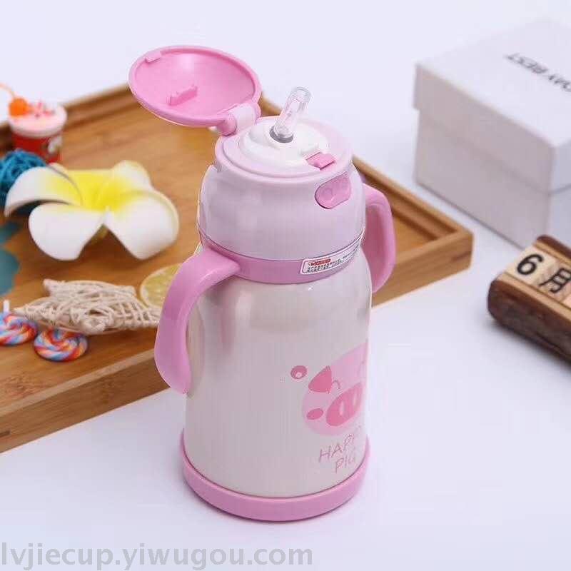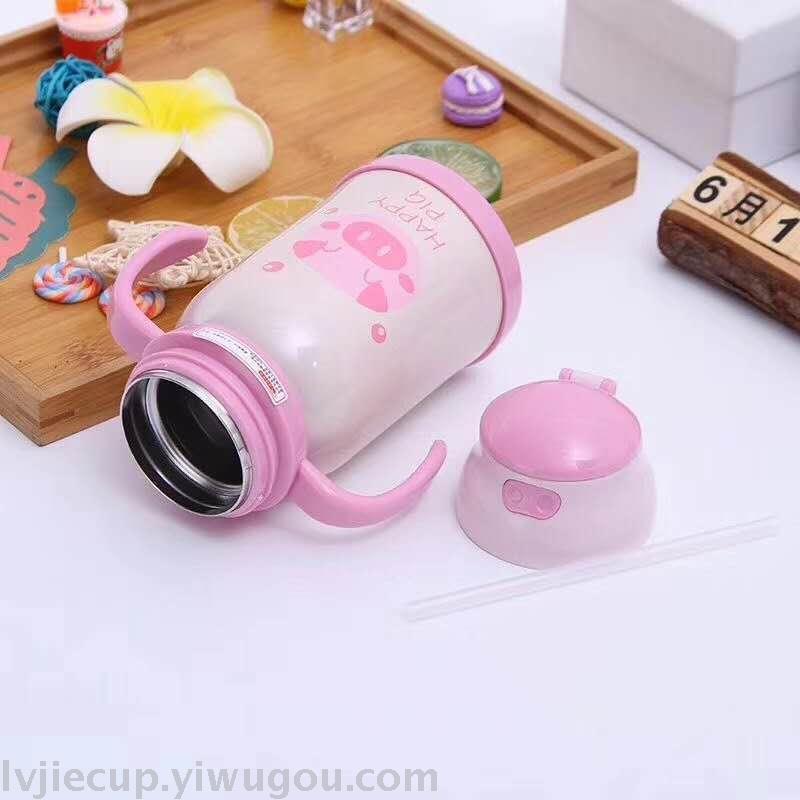 Product Name: 304 Children's Straw Cup with Stainless Steel Insulation and Handle, Portable Water Cup for Baby with Cute Cartoon Insulated Flask