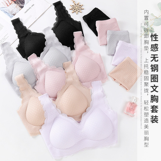 Hot style girls pure color lace suit traceless underwear set sports gather no rims underwear underwear