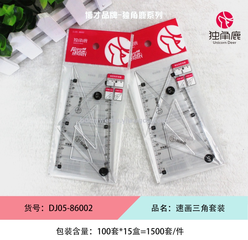 single-horn deer triangle suit, set square, triangular plate, two pieces, transparent ruler body, fashion and creative