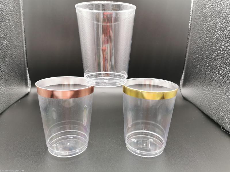 Disposable 10oz plastic cup, conventional transparent color plated edge OPP bag packaging, if you need specific size plus QQ:1256991256