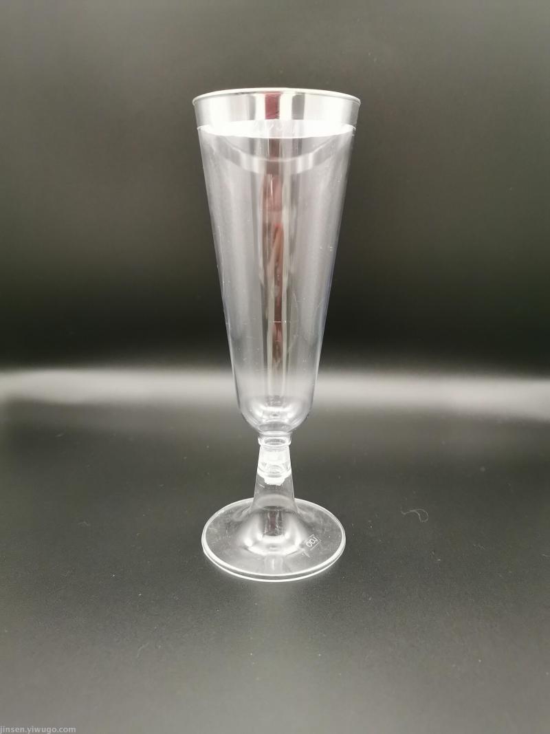 Disposable champagne glass, conventional transparent silver-plated edge, 6 or 12 blister packaging, if you need specific size plus QQ:1256991256