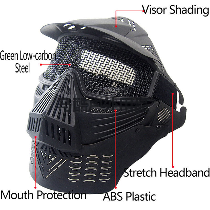 outdoor tactics diamond steel mesh full face lengthened protective mask military fans cs field protective mask equipment