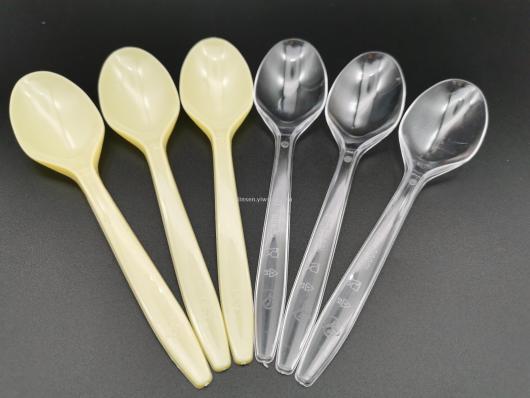 Disposable spoon, conventional beige transparent two colors, a pack of 100 in bulk, can be customized according to customer requirements, please add QQ:1256991256