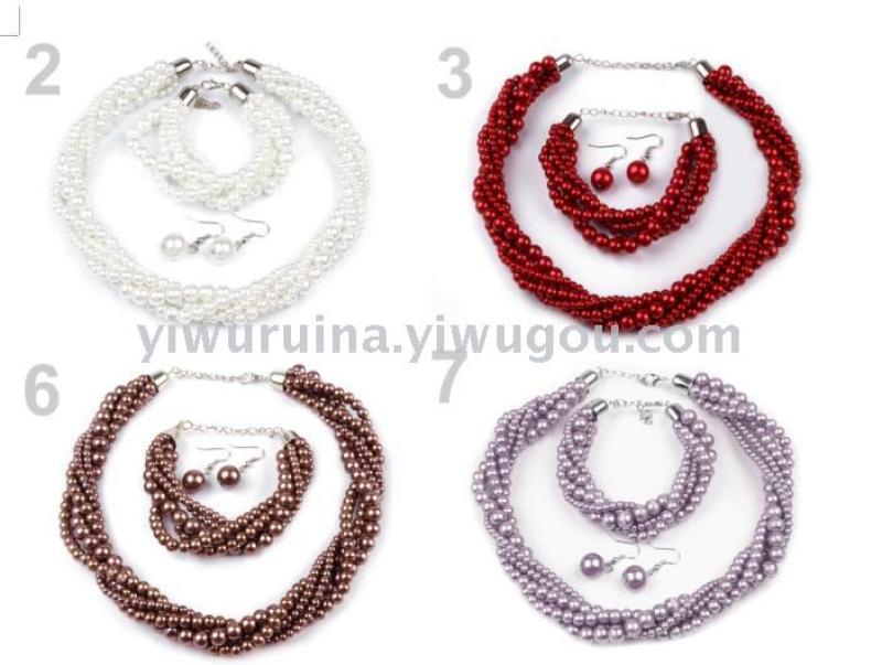 more than european and american pearls twist choker bracelets and earrings suit women's exquisite clavicle chain neck chain