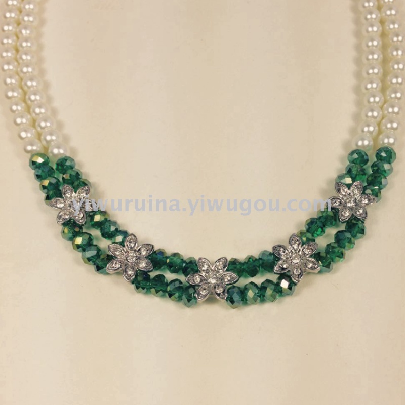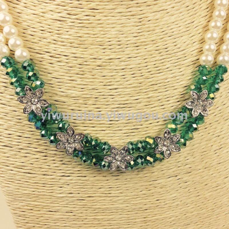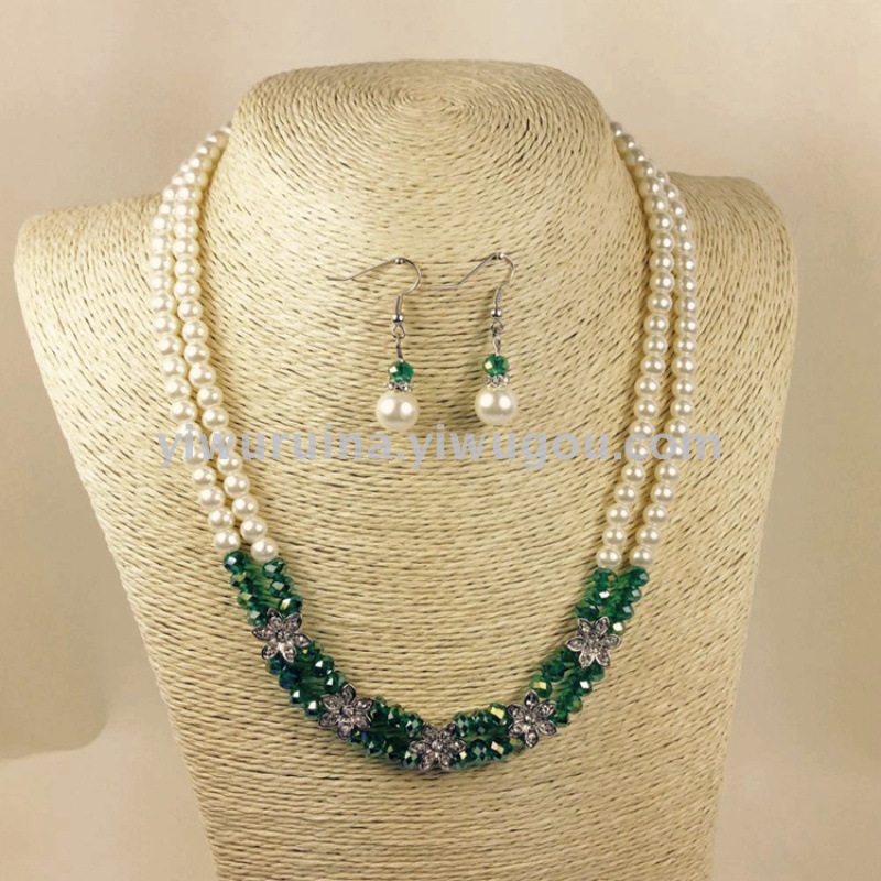 Name: Handmade Ladies Pearl Crystal Flower Necklace and Earring Set