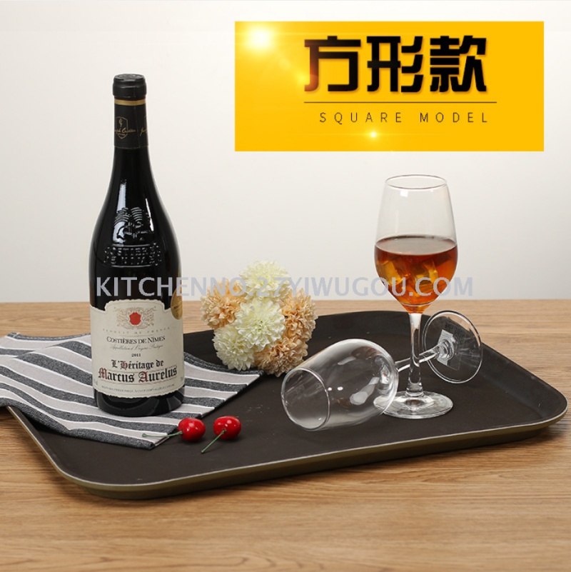 Rectangular coffee black steel non-slip plastic hotel supplies bar catering dishes served on a tray