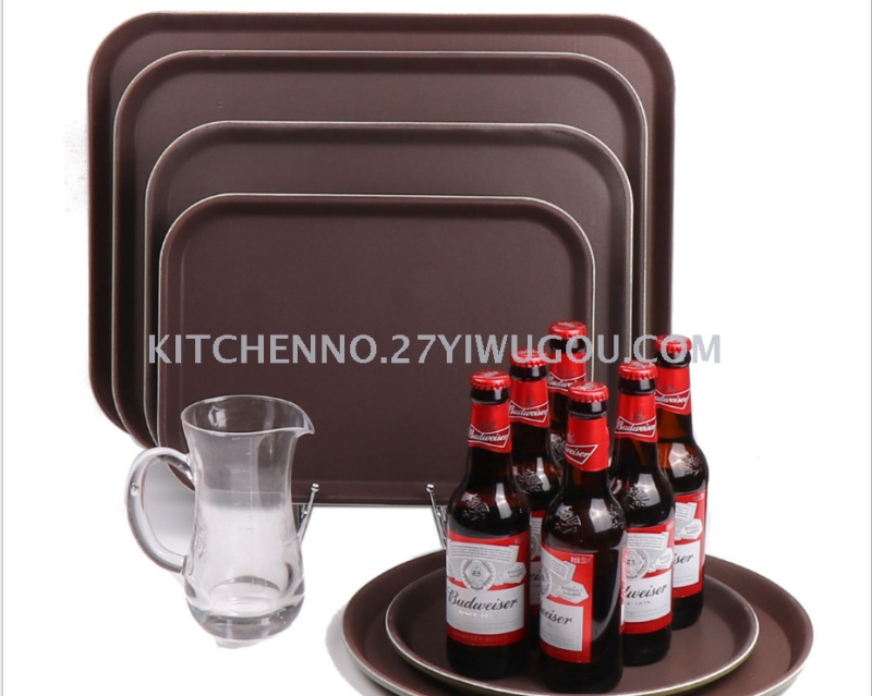 About Product:Rectangular coffee black steel non-slip plastic hotel supplies bar catering dishes served on a tray