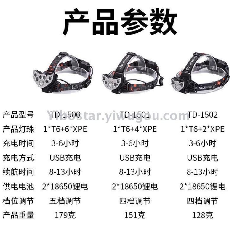 New 3 5 7LED strong headlamp USB charging outdoor headlight T6+XPE headlamp