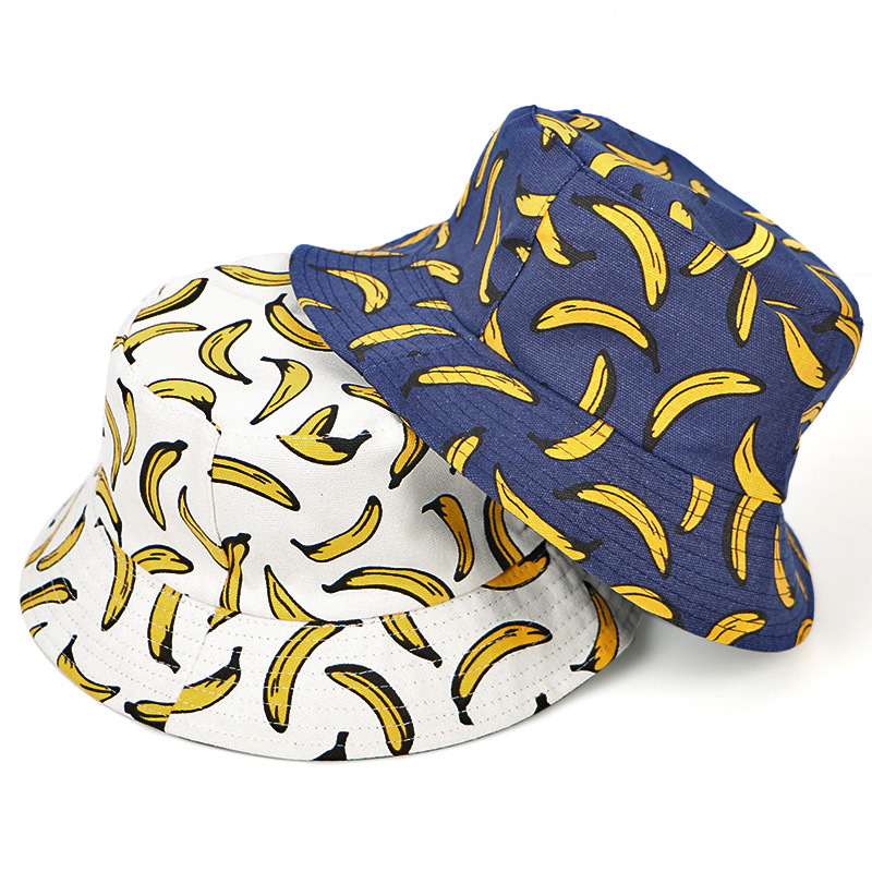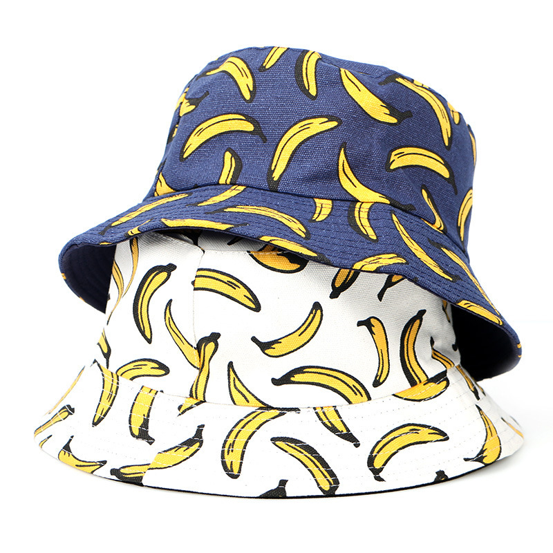 Foreign trade spring and summer banana print double wear fisherman hat sunbonnet lovers sun hat basin hat