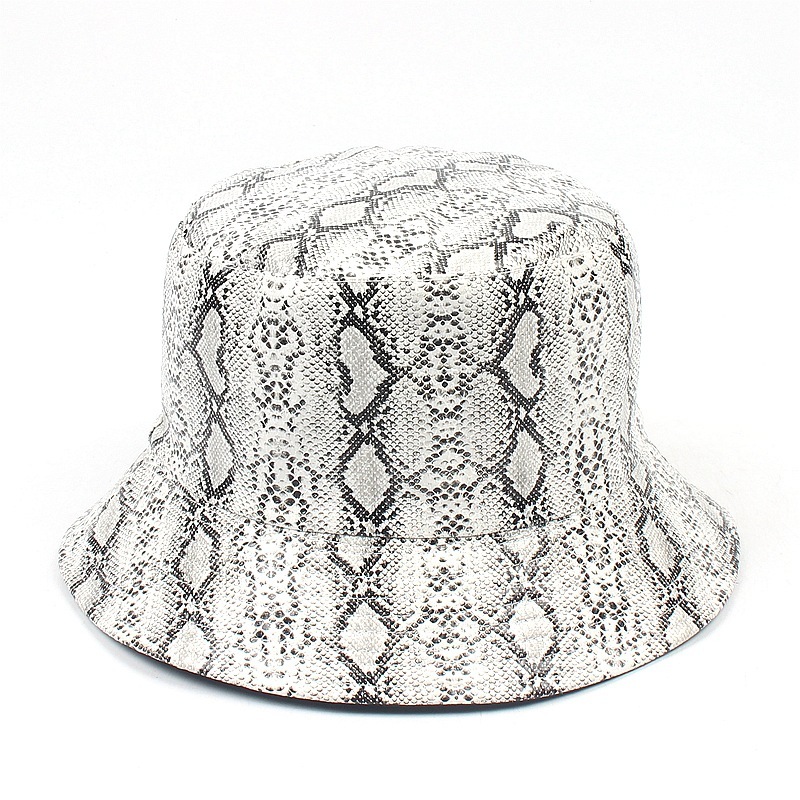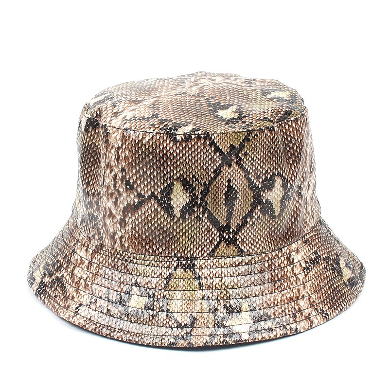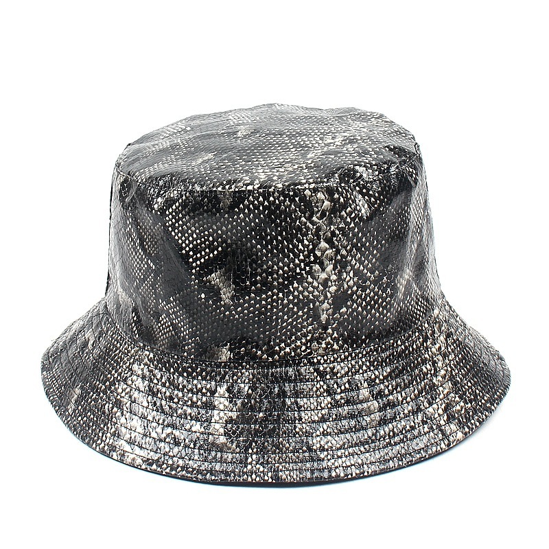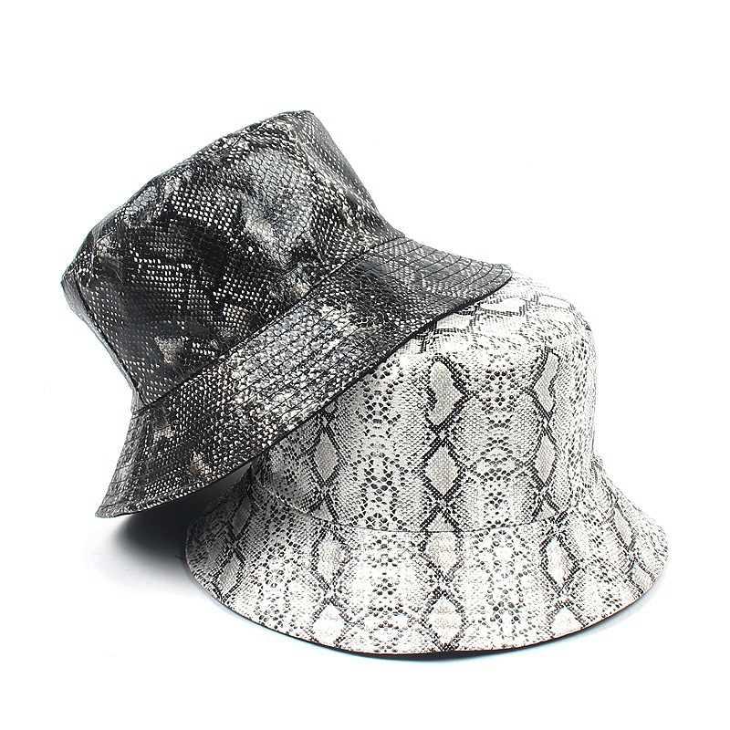 PU snake pattern fisherman hat men and women street fashion double wear hip-hop hat travel sun hat