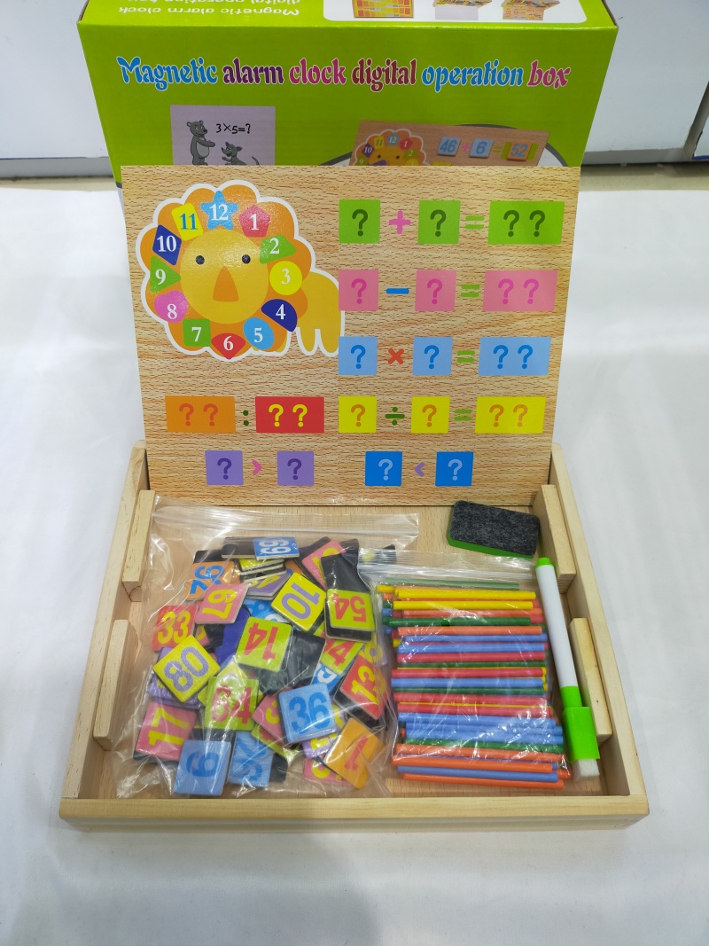 Children's Double-Sided Magnetic Alarm Clock Digital Computing Box Baby Building Wooden Intelligence Elementary School Student Math Toy WBH