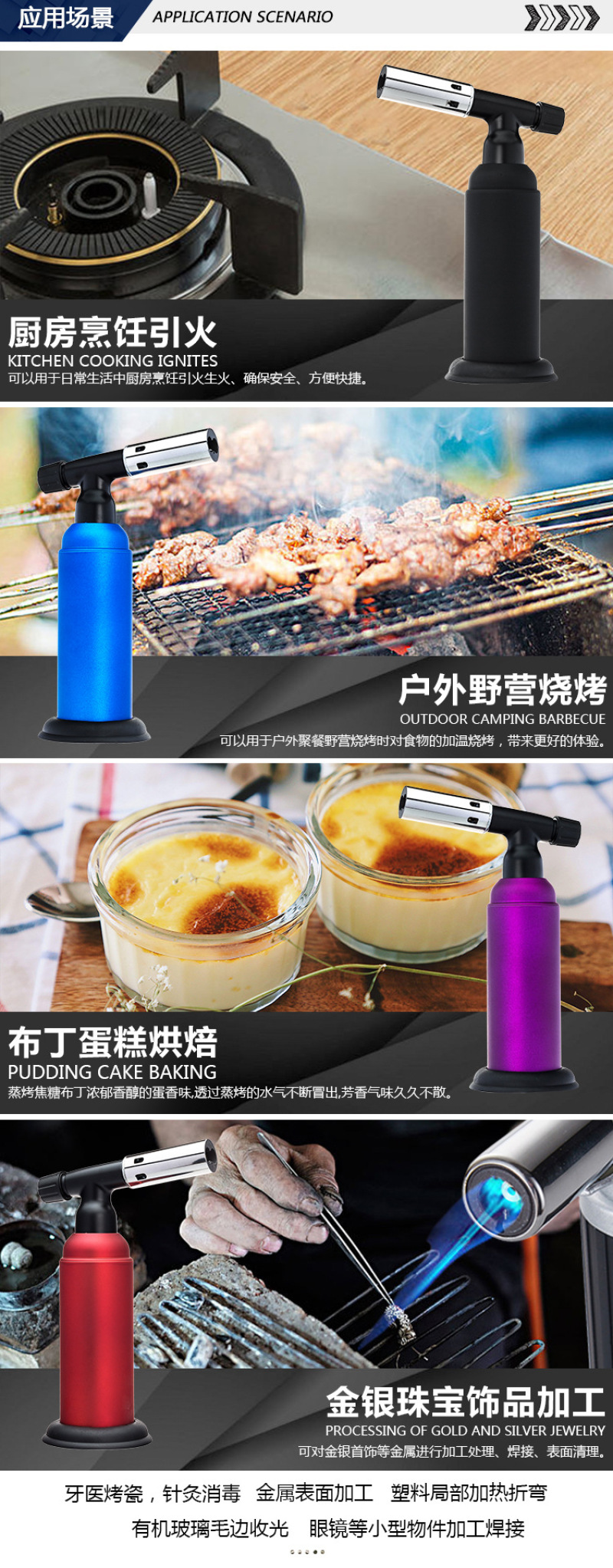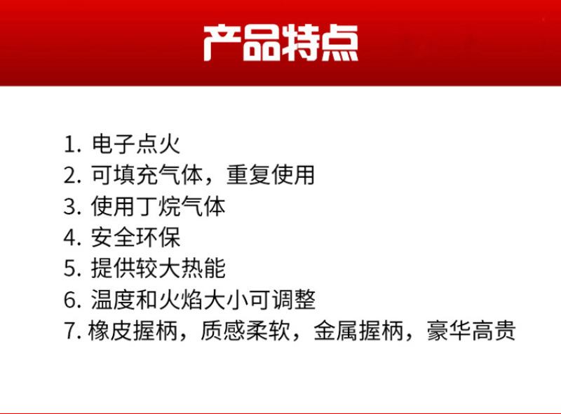 About Product:Welding torch spray gun manufacturers selling portable outdoor camping barbecue lighter spray gun, low flame/baking cake surface processing low cheese cake/mousse cake mold release low barbecue low water/cook/wild hotpot \"wild fire dealing with pig's feet, such as processing pig and so on low iron/copper/plastic pipe bend low metal surface cleaning low cement/terrazzo surface treatment for the natural stone material surface low welding low cutting processing, low bamboo handicraft production low pipe freezing winter before the start of low engine fast heating low building waterproof construction low drying, heating