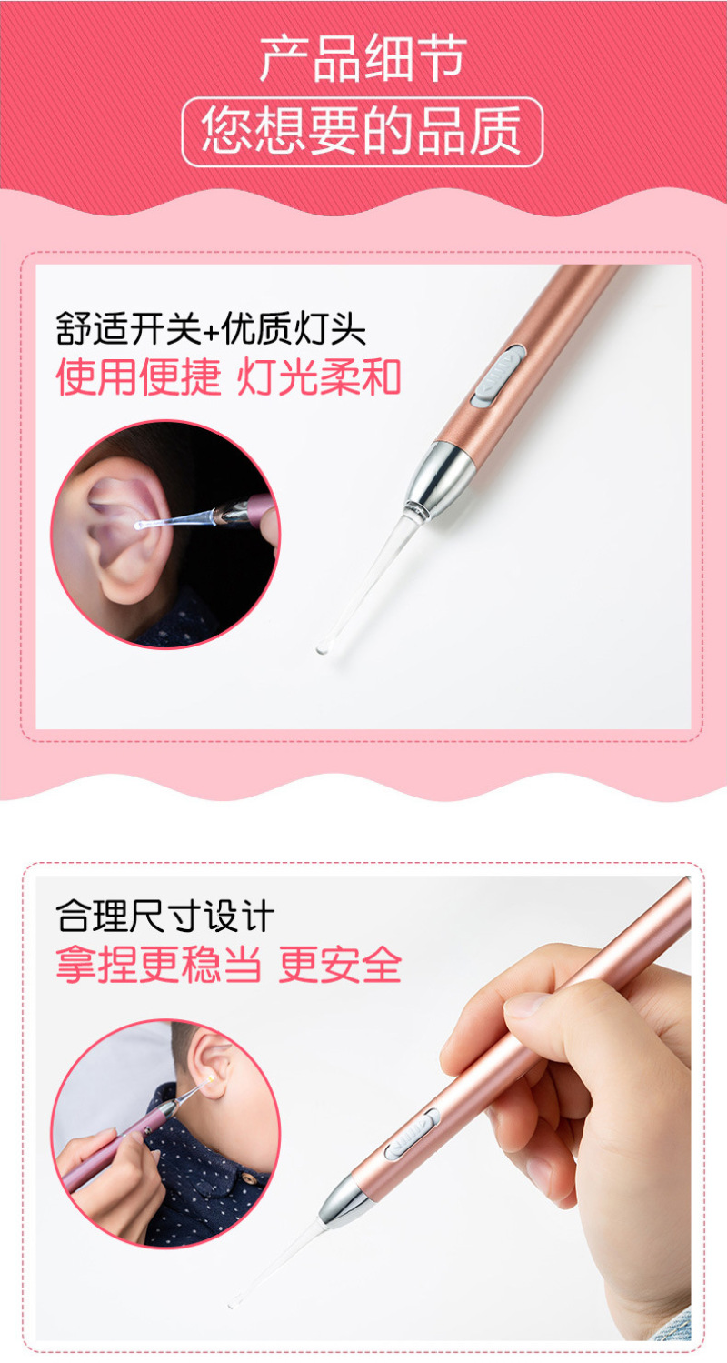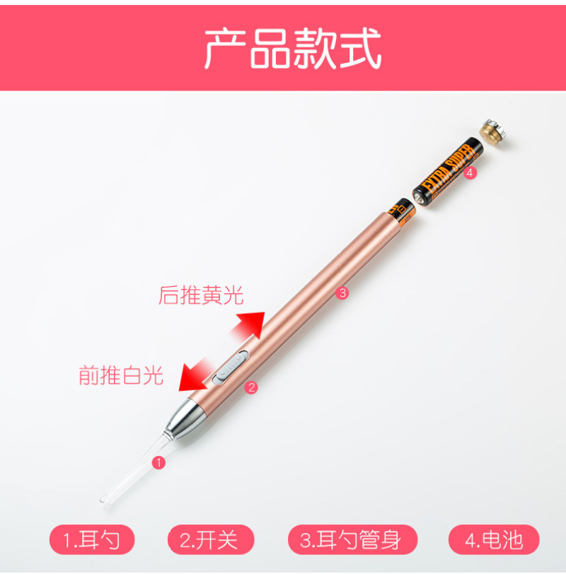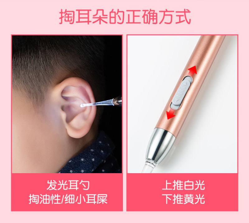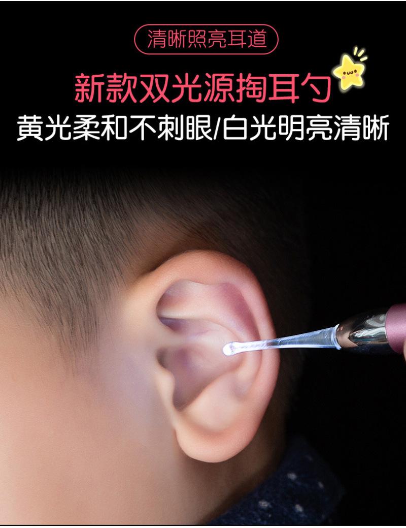 Yellow and white double light source luminescent ear scoop children ear artifact tools baby cleaning earwax ear cleaner