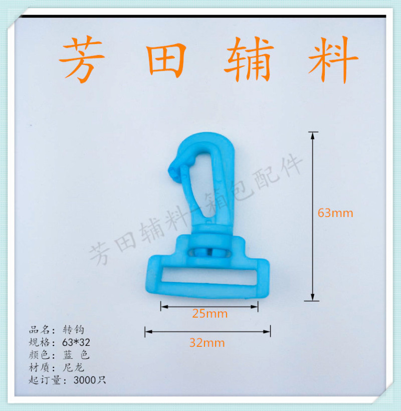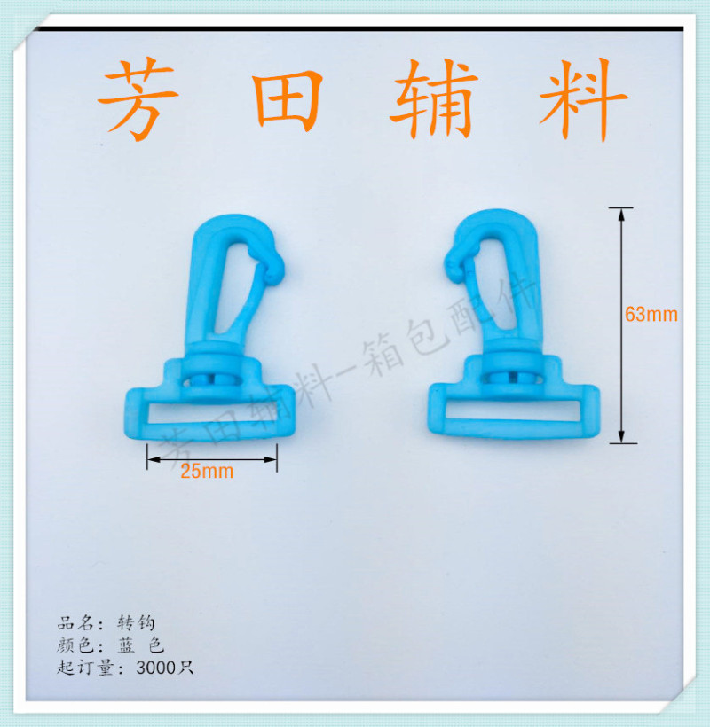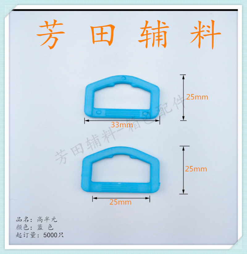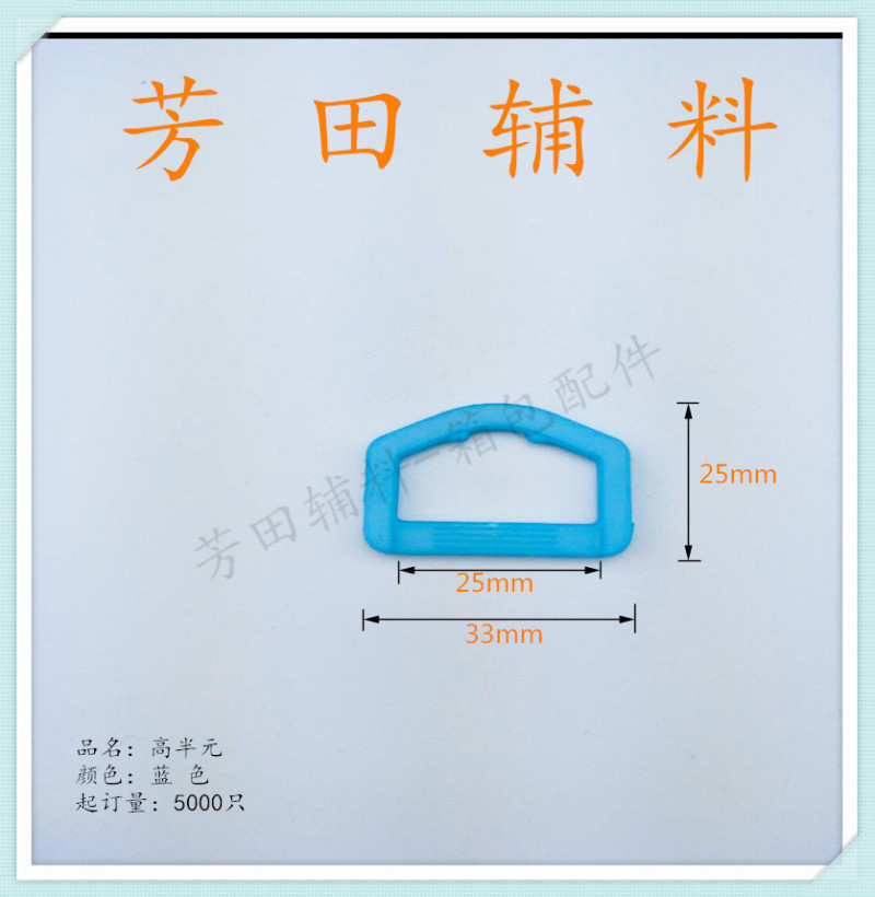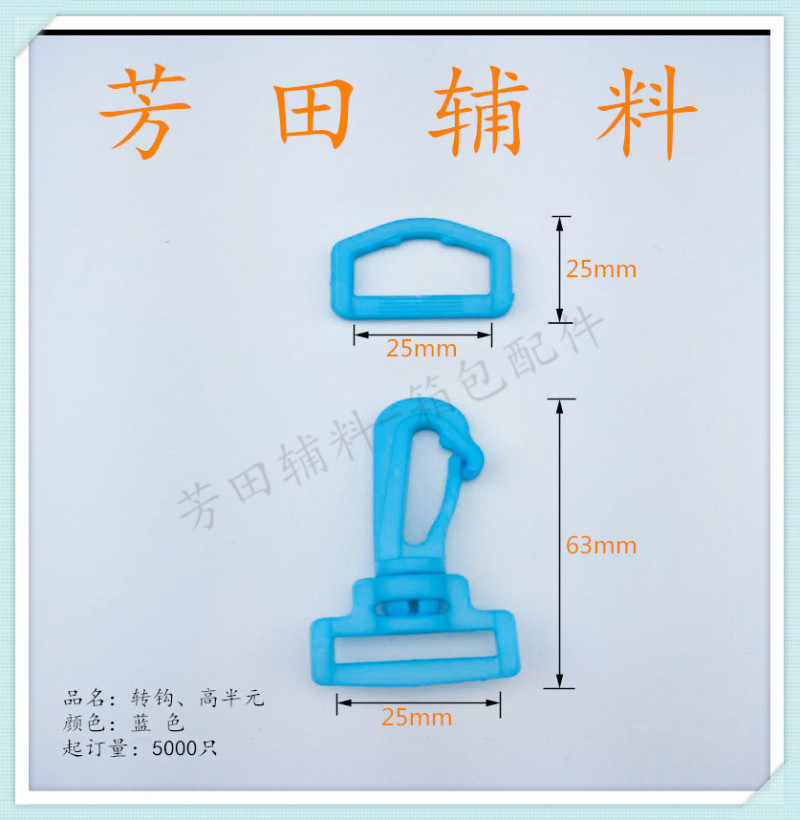 【产品型号】:25mm 【产品尺寸】:25*25高半元、63*32转钩 【产品材质】:环保料 【产品颜色】:蓝色 |