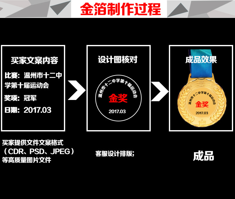 Yiwu jinjinzun stationery and sports products factory is a professional production and processing company of trophies, MEDALS, MEDALS, badges, certificates, gifts, prizes, souvenirs, accessories, metal materials, advertising materials and other products, with a complete and scientific quality management system. Yiwu jinzun stationery and sports products factory integrity, strength and product quality recognized by the industry. Welcome friends from all walks of life to visit, guidance and business negotiations. Contact information: