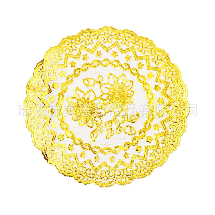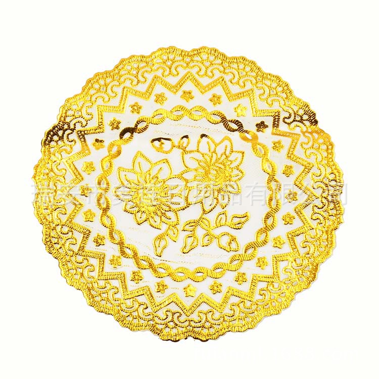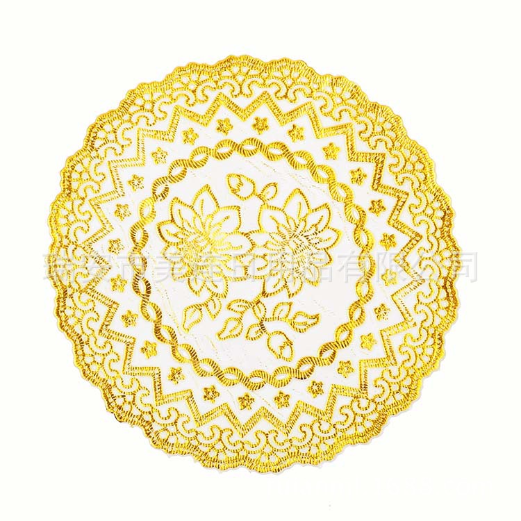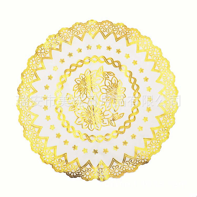 此款餐垫以优质PVC为主要材料,烫金镂空精美印花。简洁大方、素净高雅,亦可放在花瓶、烟灰缸下做衬托,也可以作为桌旗哦~实用性和装饰性极强