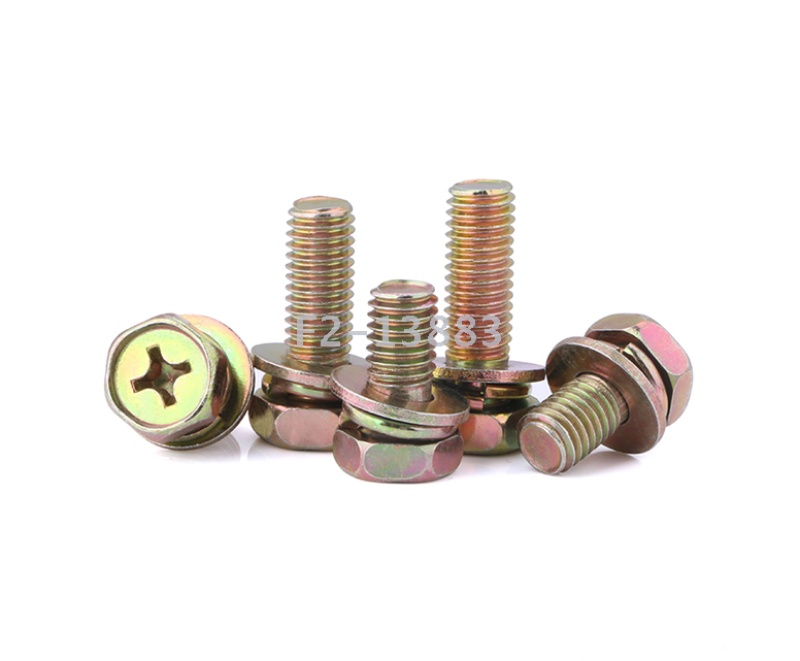 Hexagon three-assembly bolt with outer hexagon three-assembly screw M4M5M6M8 color zinc GB9074