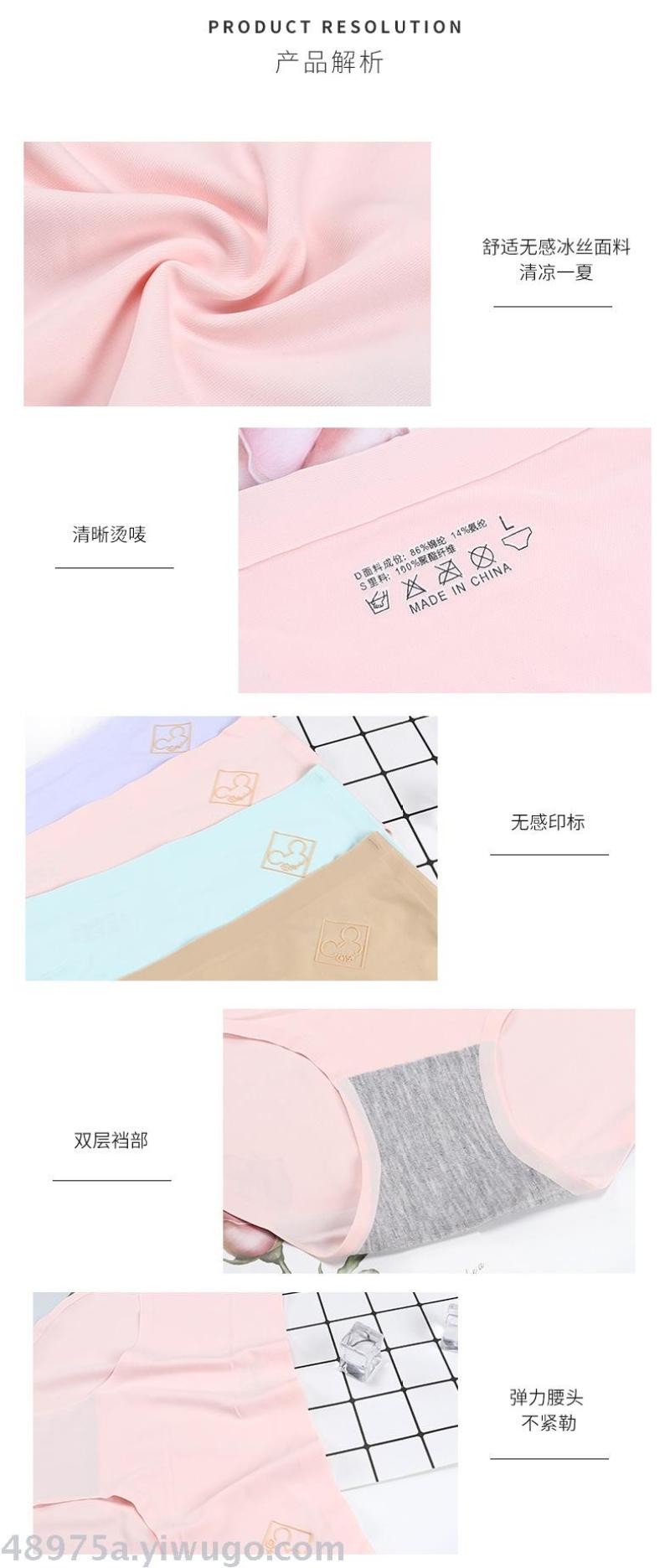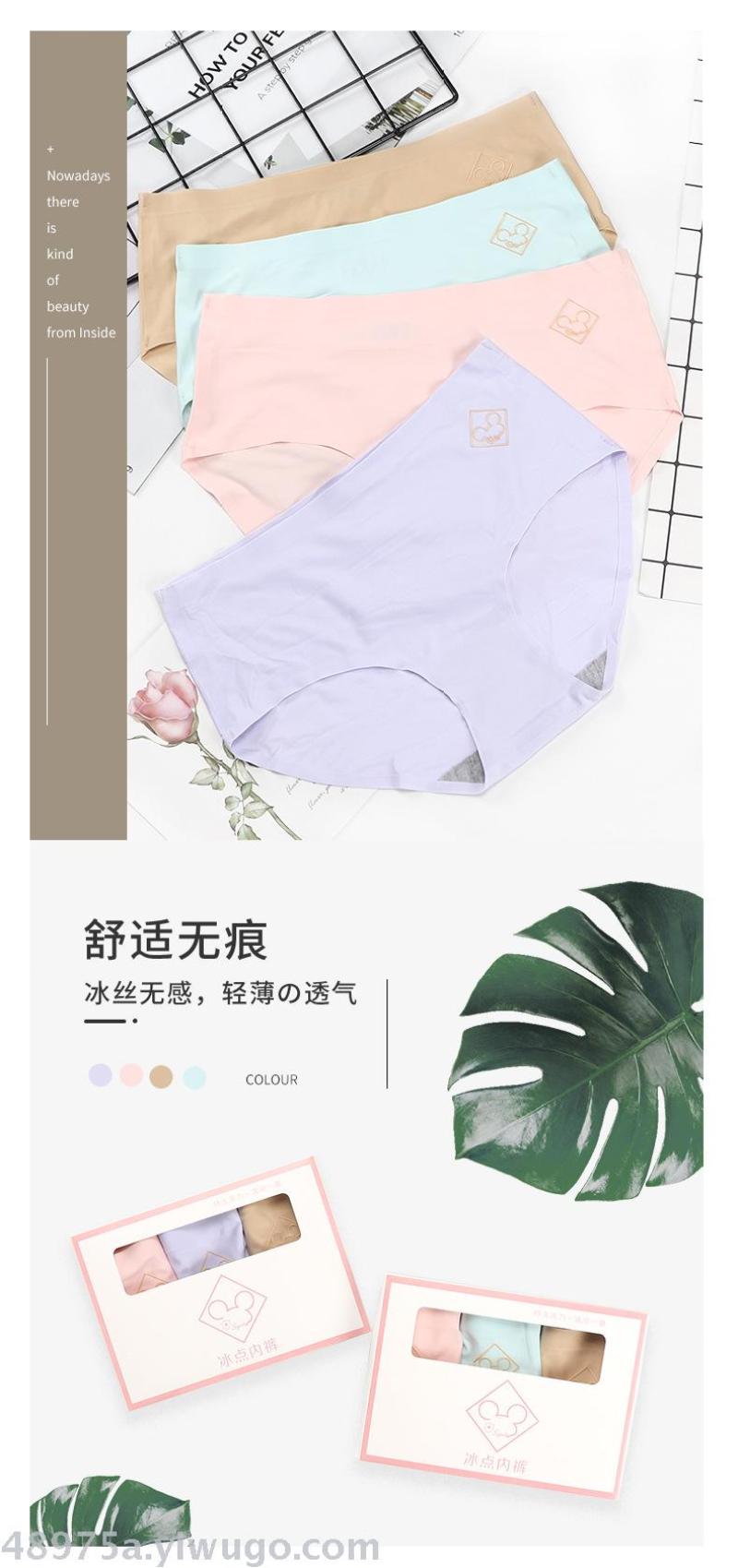 New Women's Ice Silk Refreshing Breathable Quick-Drying Ultra-Thin Seamless One-Piece Bamboo Charcoal Briefs 3 Pairs/pack