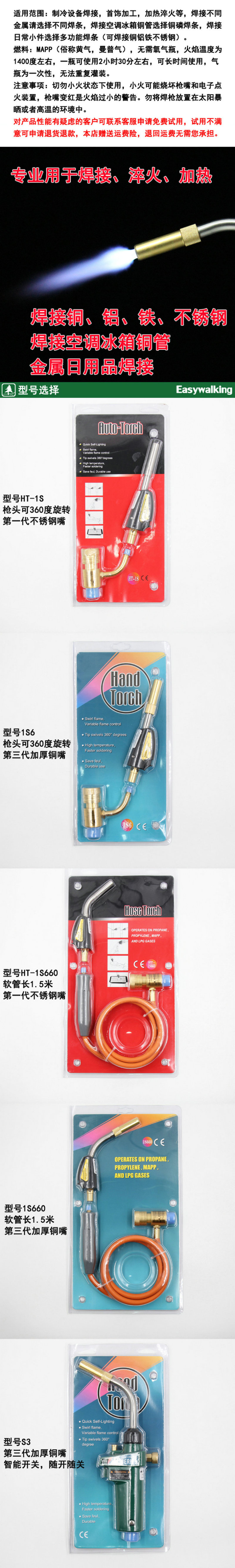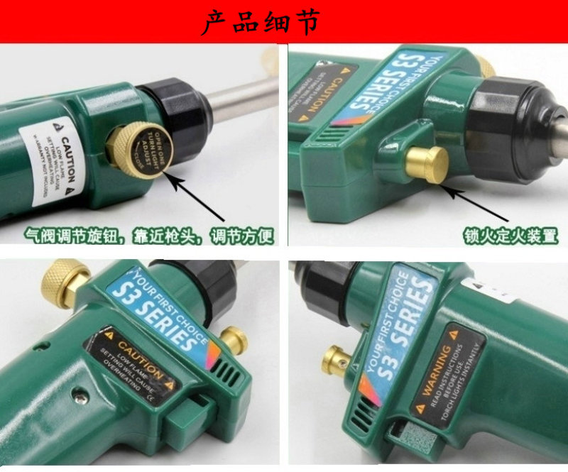 About Product:Features: this spray welding gun is a special spray welding gun for American gas tank. After installing the converter produced by our company, we can use the common flat gas tank on the market. The highest temperature can reach 1800℃, super-strong spiral flame, is a welding tool, especially suitable for air conditioning, refrigerator and other repair operations. The product comes with an electronic lighter system. Product packaging: double blister paper card packaging. Product material: pure copper + stainless steel