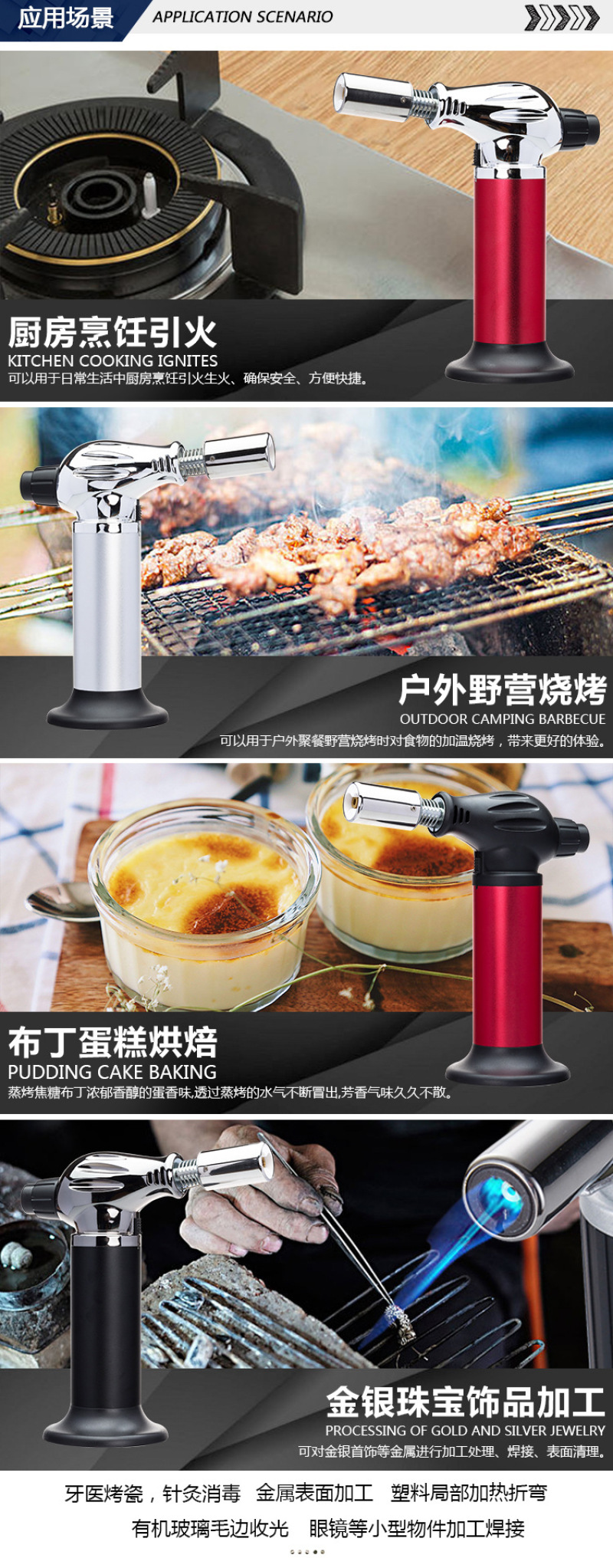 About Product:Welding torch spray gun manufacturers selling portable outdoor camping barbecue lighter spray gun, low flame/baking cake surface processing low cheese cake/mousse cake mold release low barbecue low water/cook/wild hotpot \"wild fire dealing with pig's feet, such as processing pig and so on low iron/copper/plastic pipe bend low metal surface cleaning low cement/terrazzo surface treatment for the natural stone material surface low welding low cutting processing, low bamboo handicraft production low pipe freezing winter before the start of low engine fast heating low building waterproof construction low drying, heating