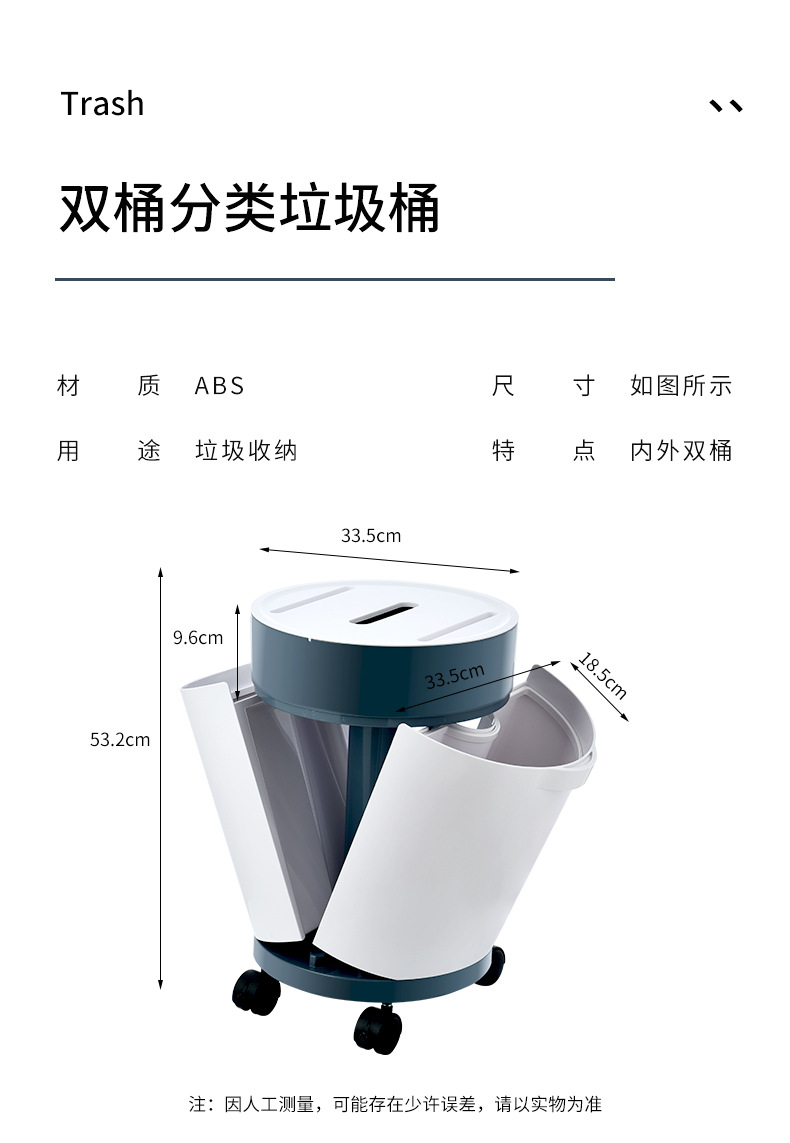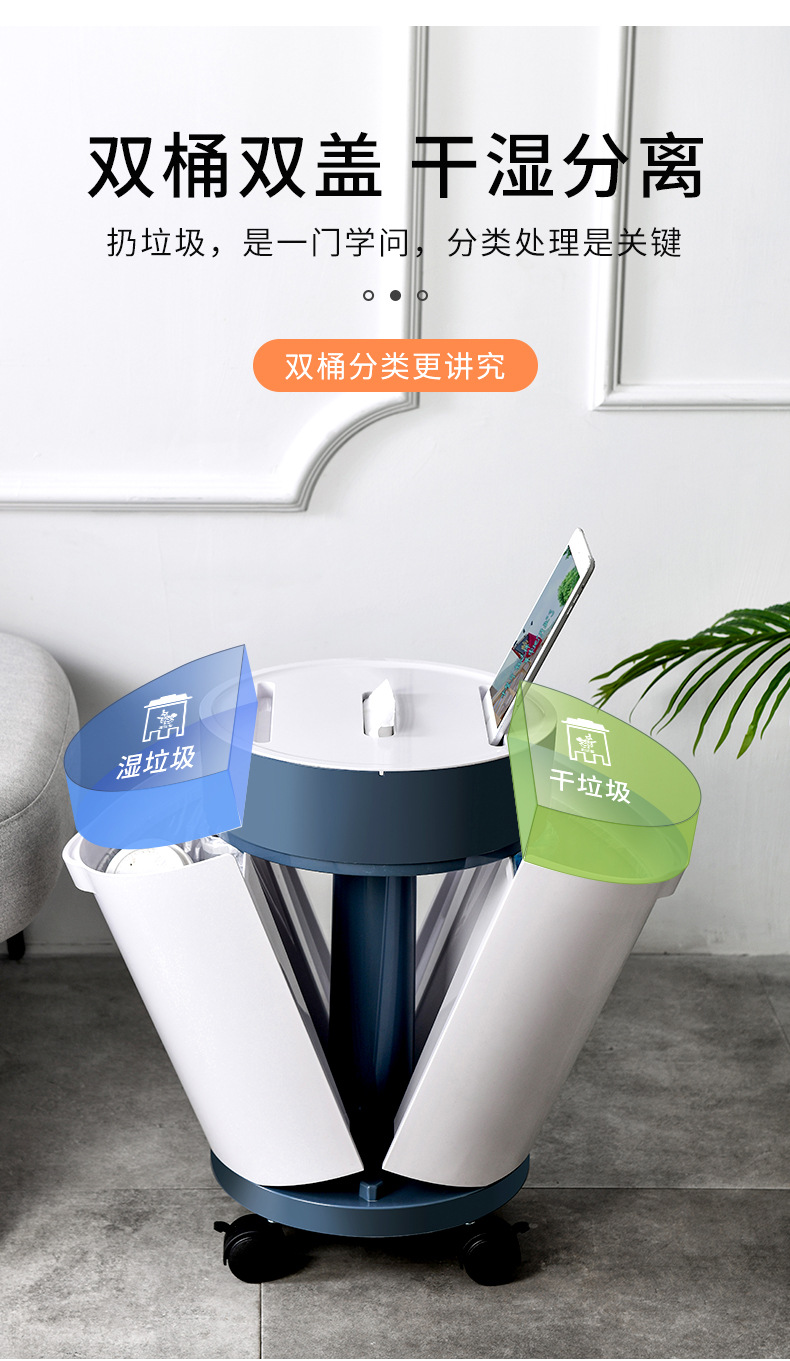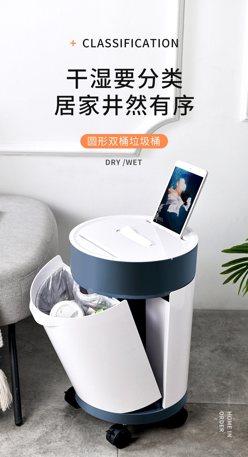 Product Name: Round Plastic Wet and Dry Separation Trash Bin
