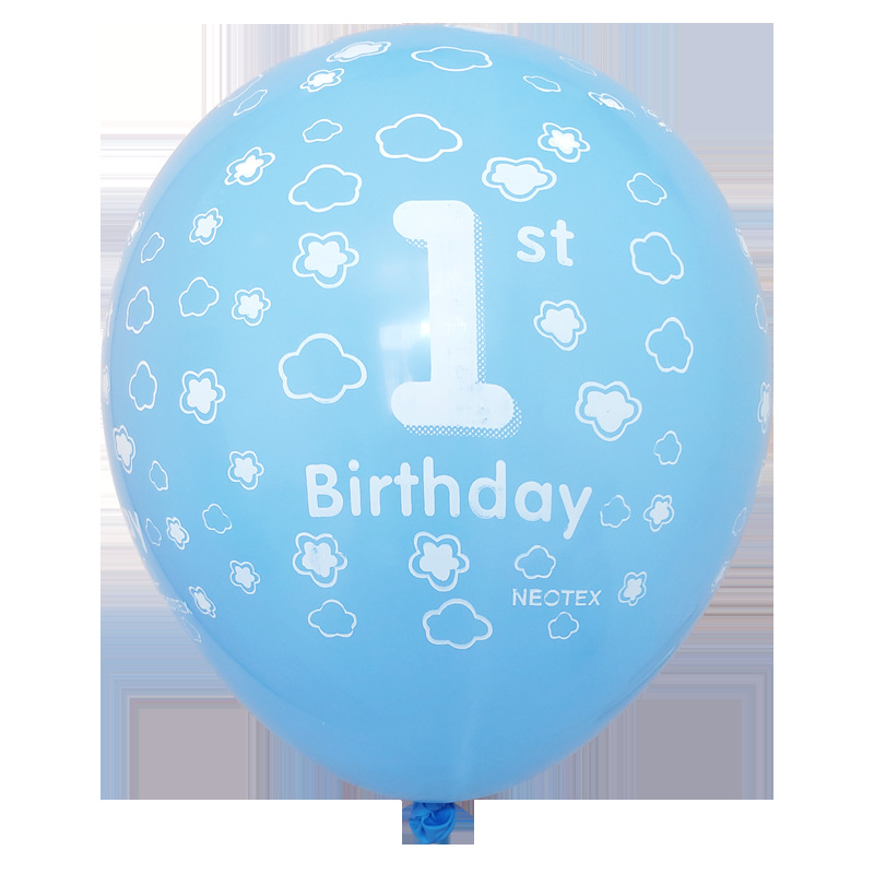 Blue One-Year-Old Birthday Package: 16*12cm birthday banner, 1-1 32-inch printed blue one, 2 18-inch blue five-pointed stars, 2 18-inch blue round balls for one year, 4 blue one-year latex balls, 4 blue polka dots, 6 gold sequins, a gold ribbon egg
