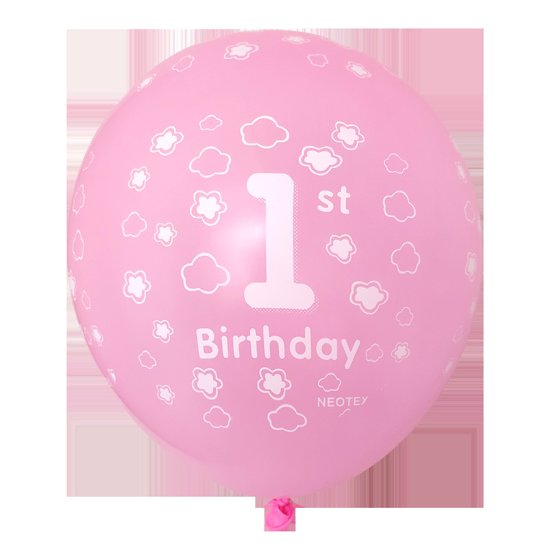 【Specification Details】: Pink One-Year-Old Birthday Package: 16*12cm birthday banner, 1-1 32-inch printed pink, 2 18-inch pink five-pointed stars, 2 18-inch pink round balls for one year, 4 pink one-year latex balls, 4 pink polka dots, 6 silver sequins, one silver ribbon egg