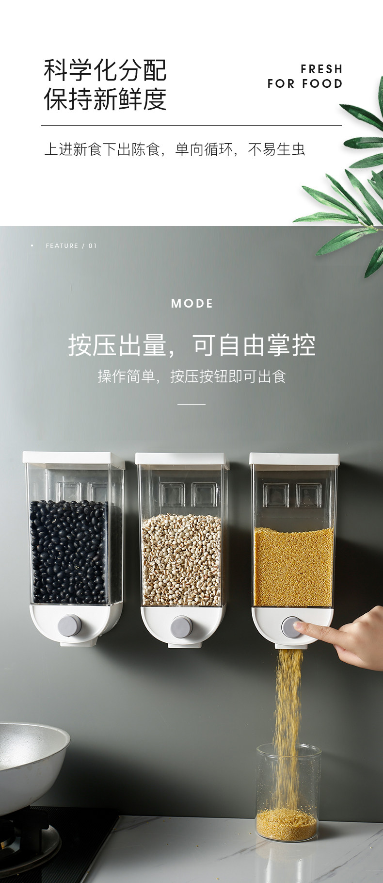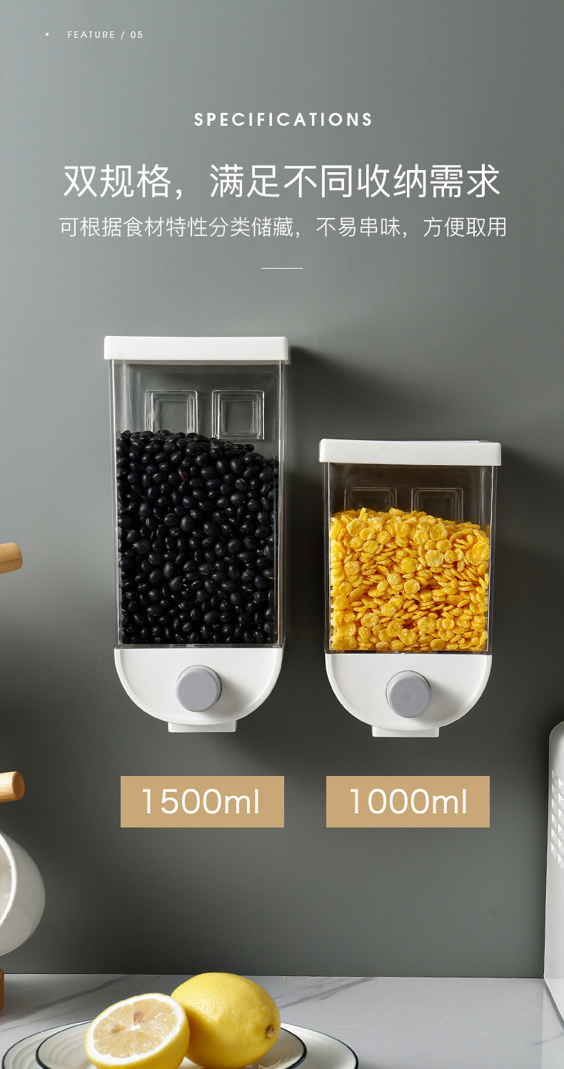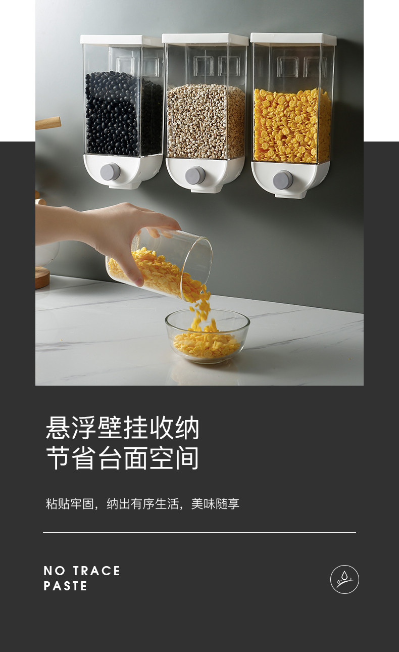 Cereal storage box kitchen wall-mounted Cereal storage tank rice bean sealed Cereal dispenser