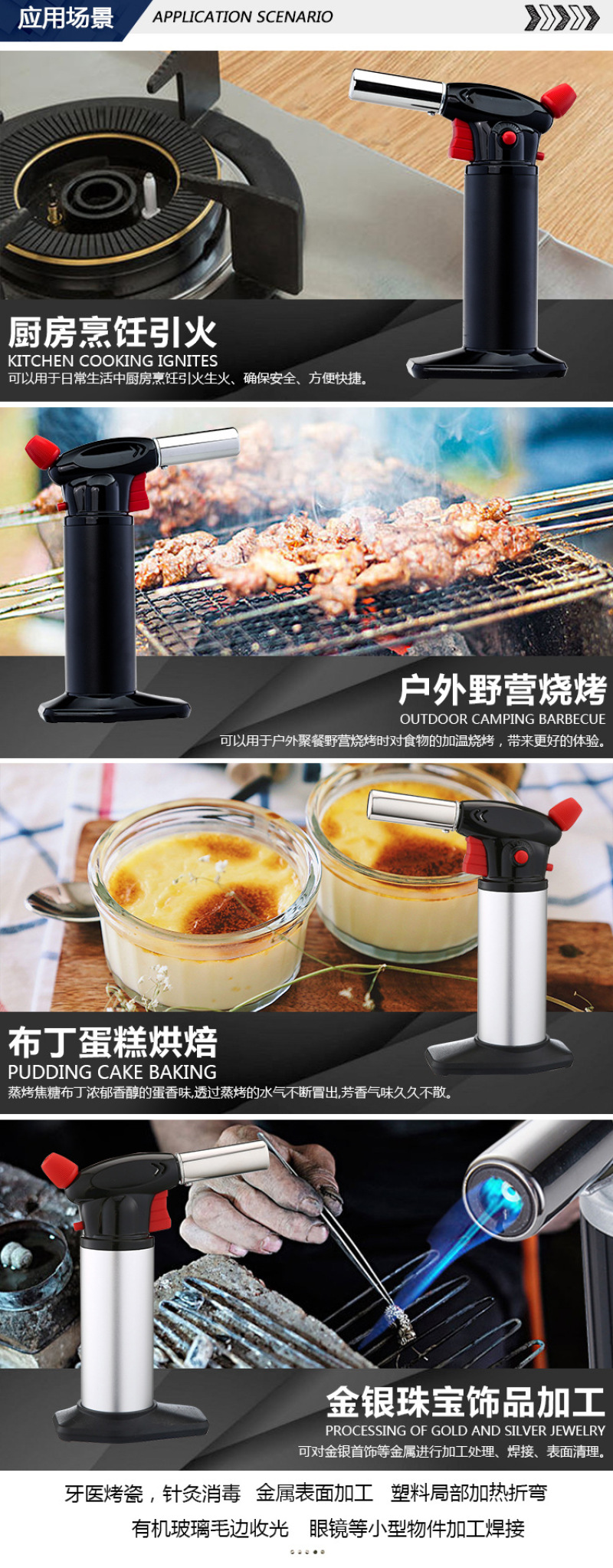 About Product:Welding torch spray gun manufacturers selling portable outdoor camping barbecue lighter spray gun, low flame/baking cake surface processing low cheese cake/mousse cake mold release low barbecue low water/cook/wild hotpot \"wild fire dealing with pig's feet, such as processing pig and so on low iron/copper/plastic pipe bend low metal surface cleaning low cement/terrazzo surface treatment for the natural stone material surface low welding low cutting processing, low bamboo handicraft production low pipe freezing winter before the start of low engine fast heating low building waterproof construction low drying, heating