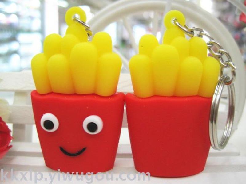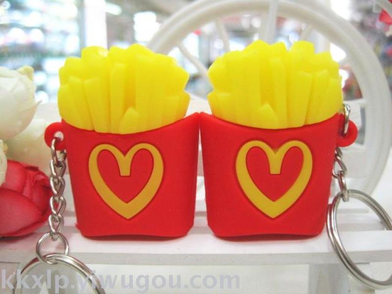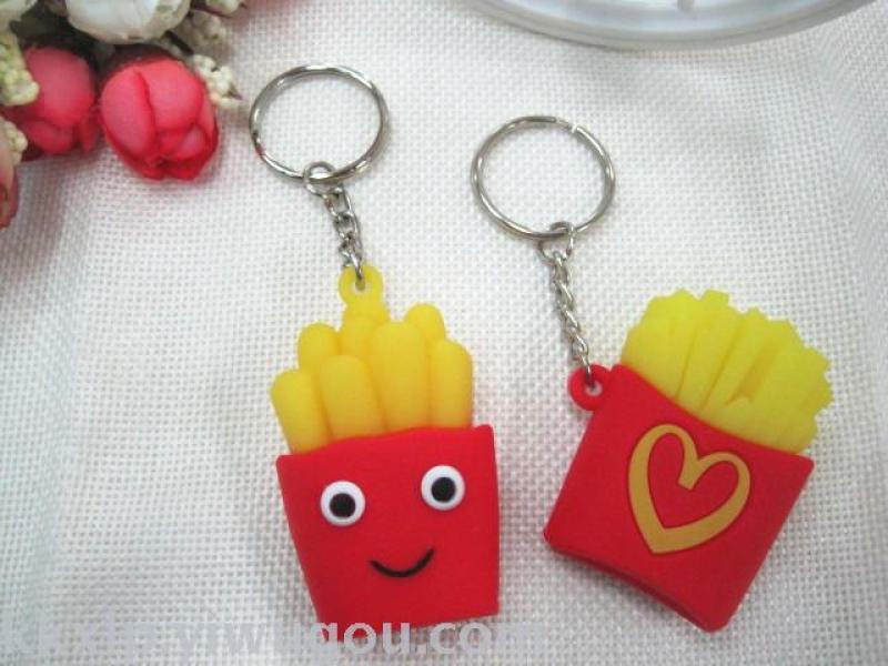Hamburger fries key chain pendant mini hamburger fries key ring imitation hamburger fries wholesale factory