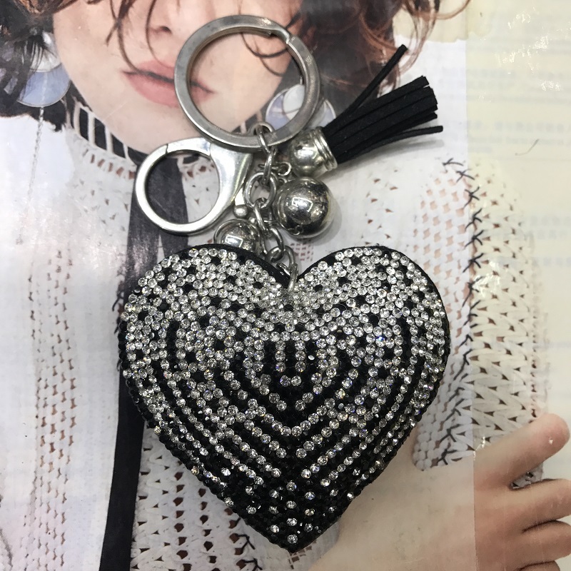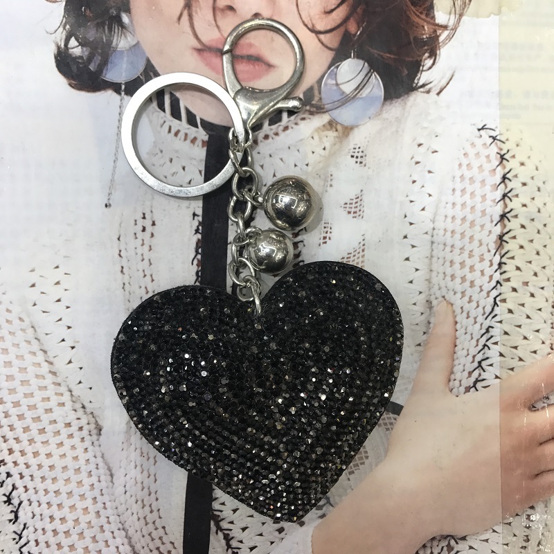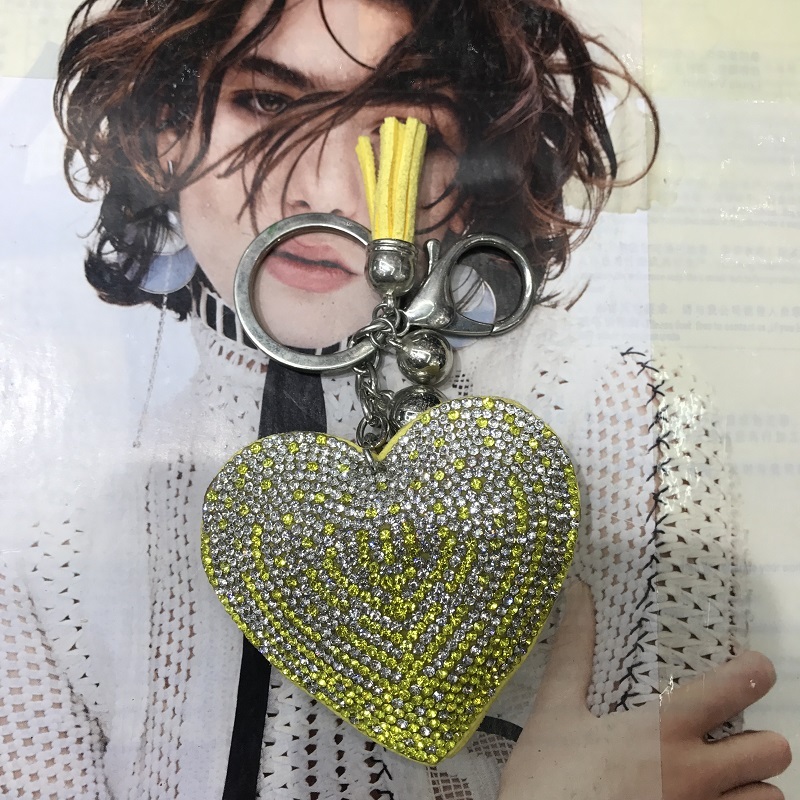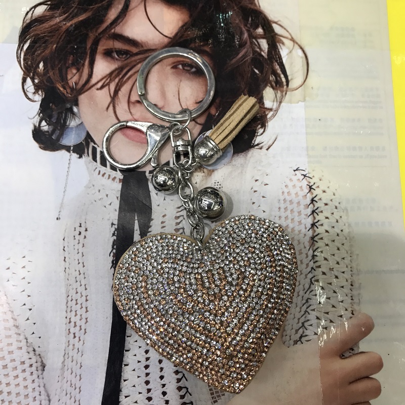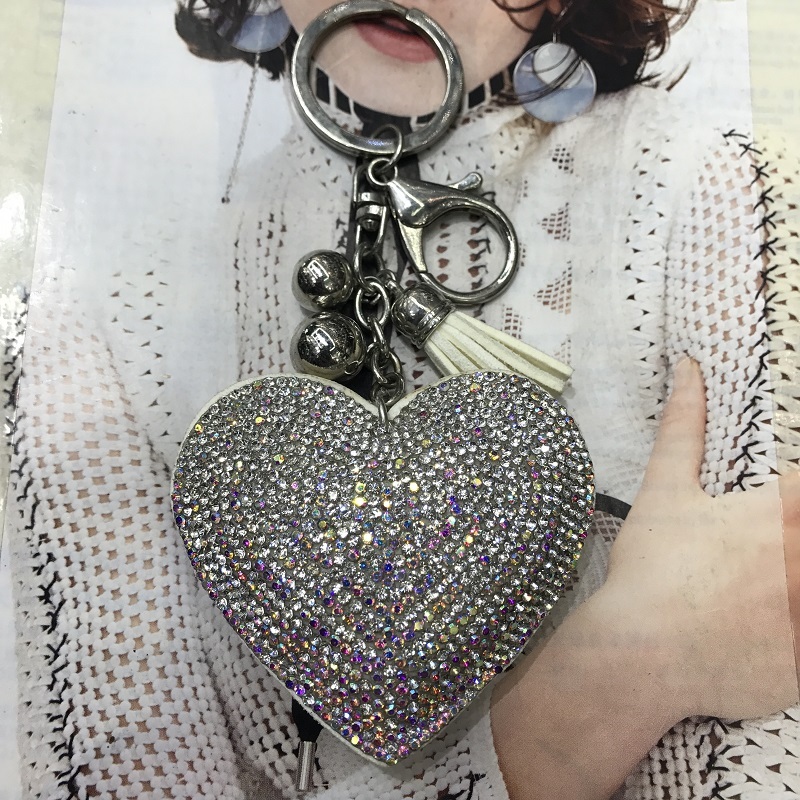 big peach heart color matching starry rhinestone korean velvet/pu leather keychain pendant