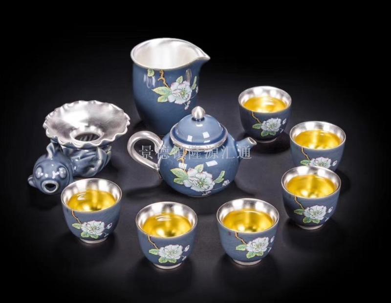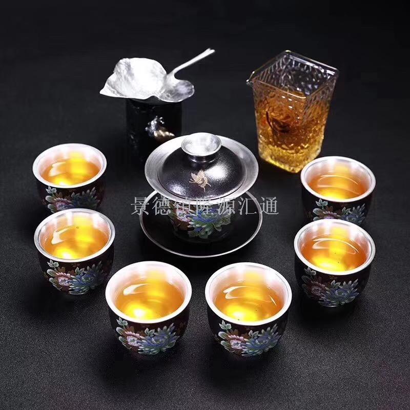 silver tea set teacup teapot travel tea set porcelain gaiwan master cup ceramic pot kung fu teaware tea jar
