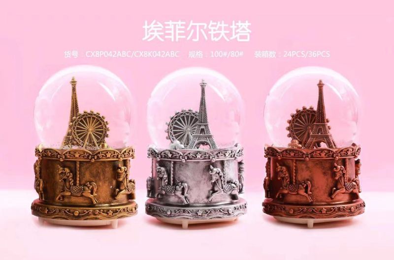 eiffel tower metal crystal ball music box decoration snow cartoon children students' birthday present