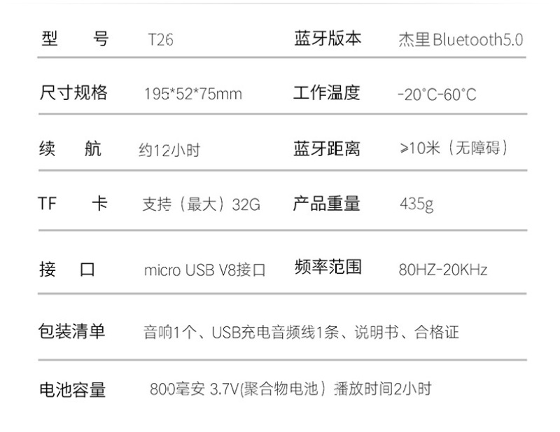 T26 new bluetooth speaker parameters: