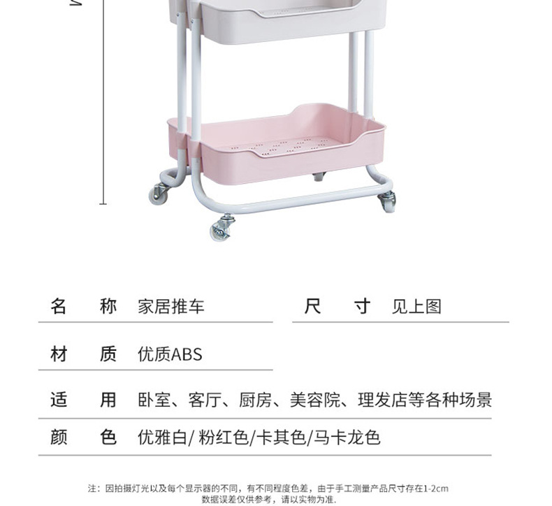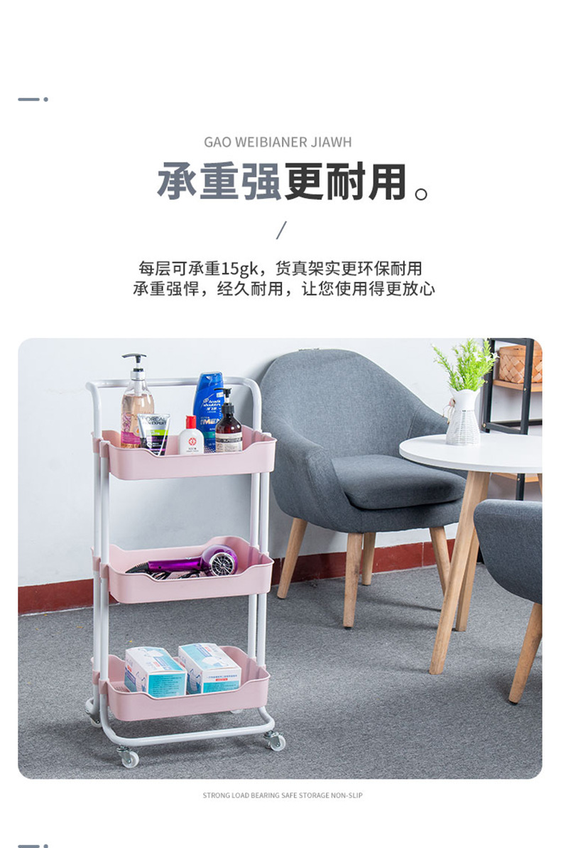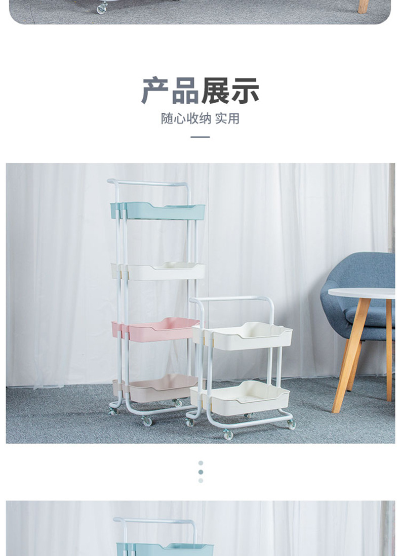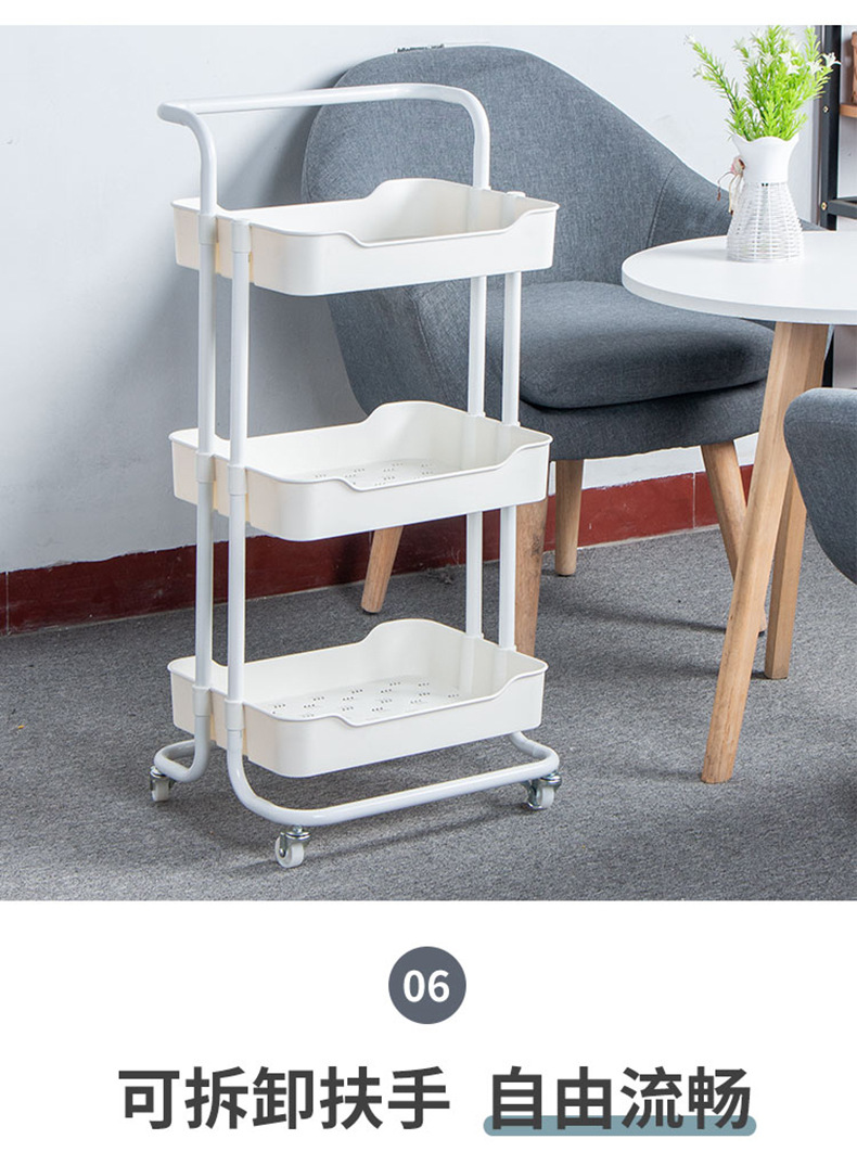 Plastic steel kitchen multi-layer trolley, mobile living room storage rack, beauty salon trolley, and storage shelf