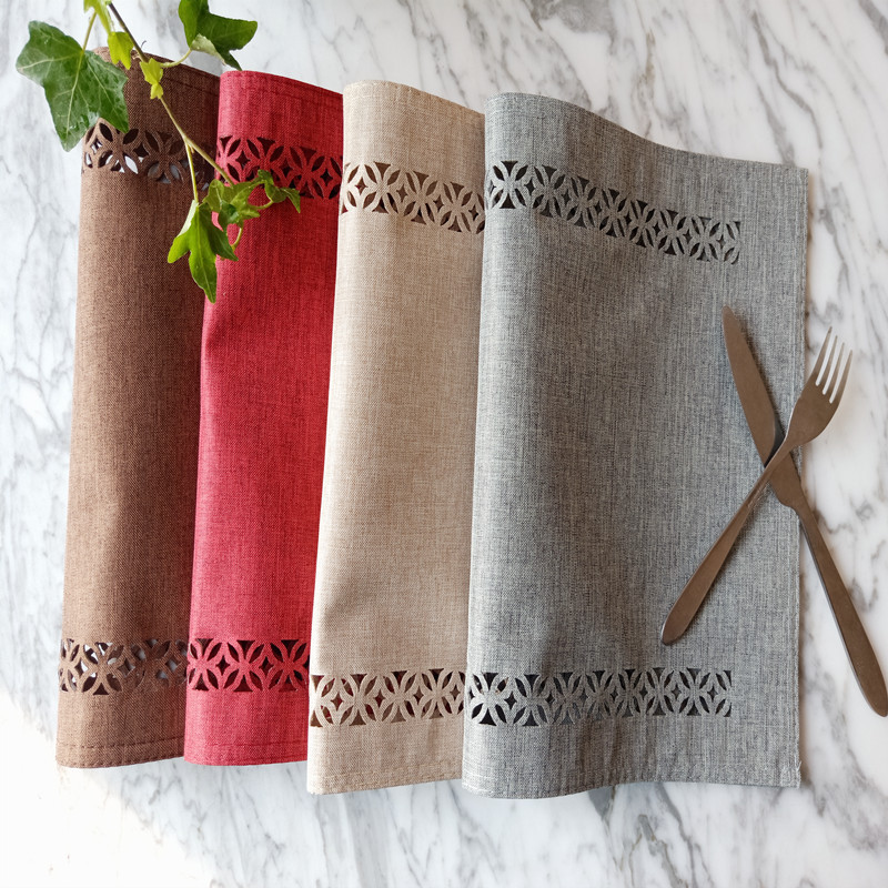 [product name] double layer laser embroidery cotton and hemp series table mat
