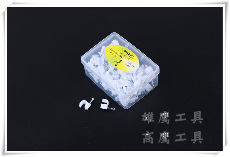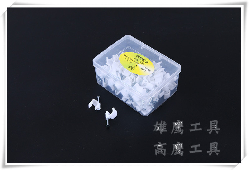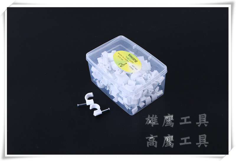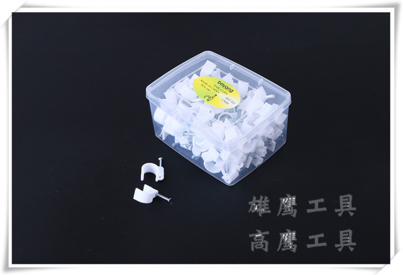 Baby name: Plastic U-shaped wall mounting clip for fixed cable management, suitable for home use.