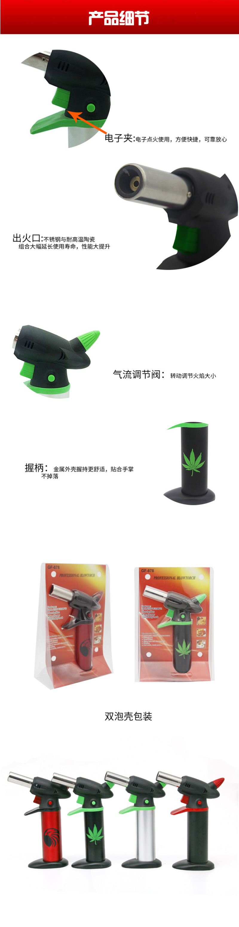 About Product:Portable flash-gun gas burner igniter outdoor barbecue flame gun inflatable wind lighter 878