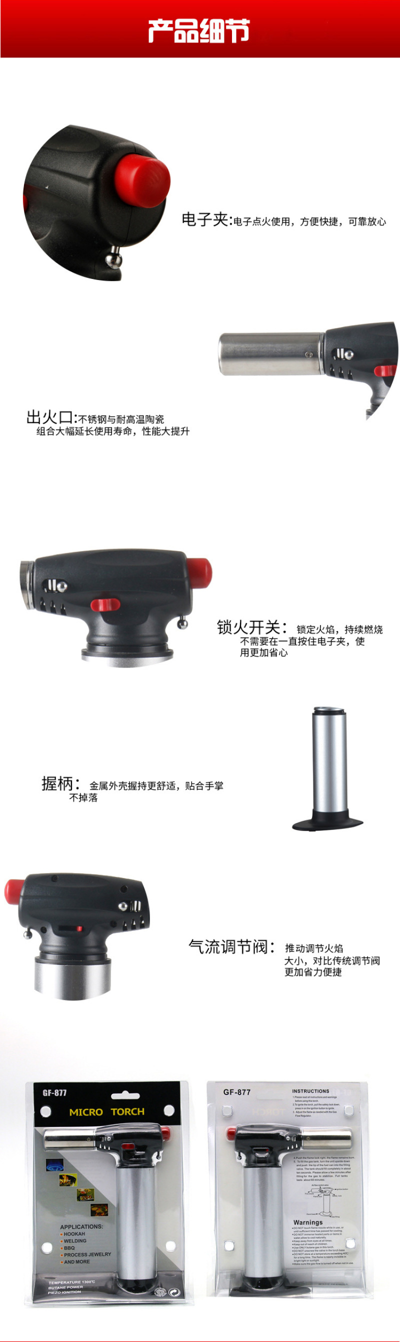About Product:Kitchen cooking spray gun outdoor barbecue lighter metal repair tool welding spray gun big straight 877A