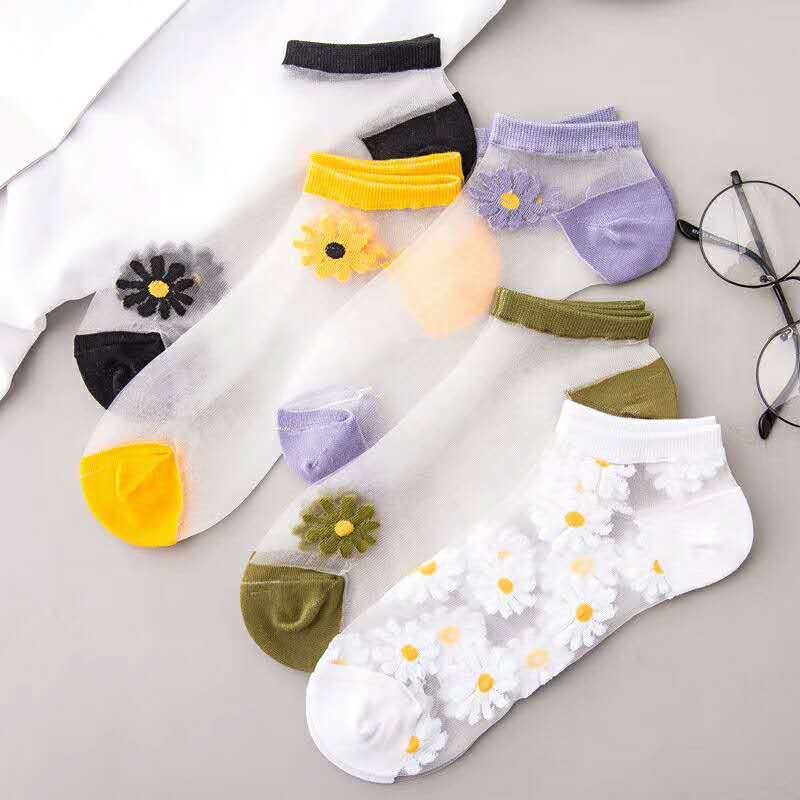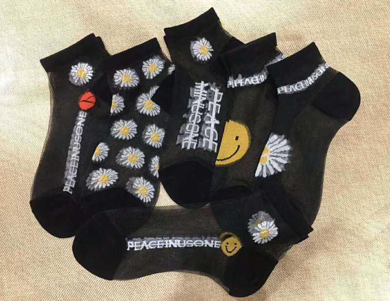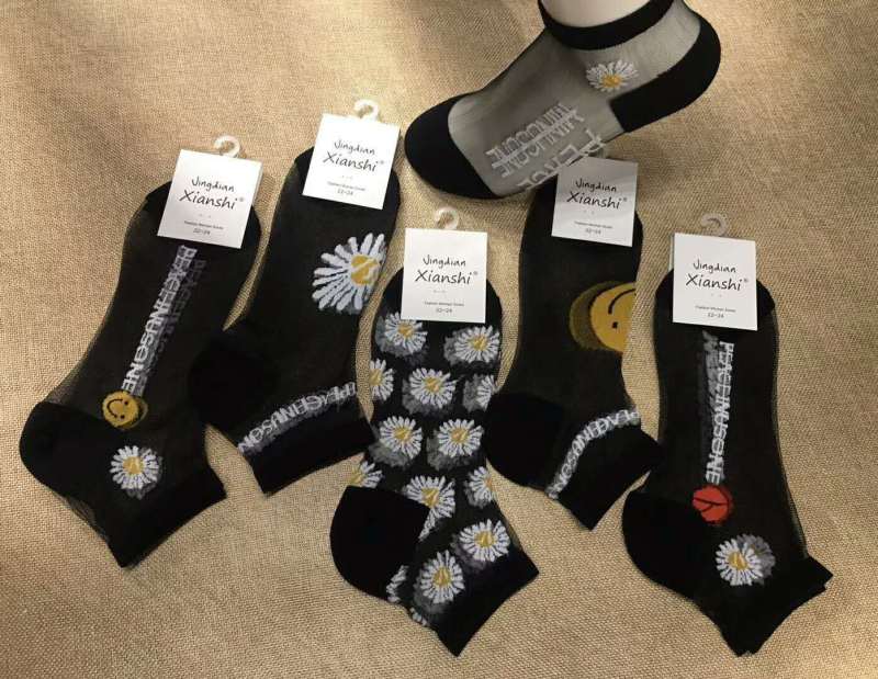 Crystal silk socks xiaozou chrysanthemum socks smiling face socks card silk socks glass silk socks chrysanthemum socks