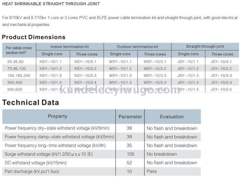 About Product:15KV HEAT SHRINKABLE TERMINATION KIT AND STRAIGHT THROUGH JOINT