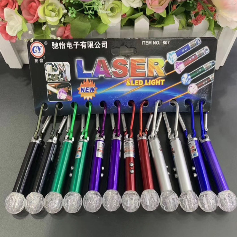 此产品称为镭射激光灯验钞球,3个灯孔,2个按钮,1是红外线激光灯,2是紫灯可以验钞票,3按下红灯,再按下红灯紫灯双闪,另配带登山扣,是外出旅游最佳选择。