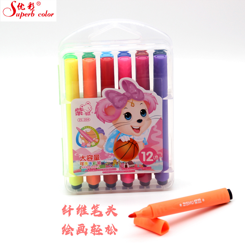 Manufacturer direct sale pen pen pen box washing color pen 12 color 48 color rough head watercolor pen painting pen