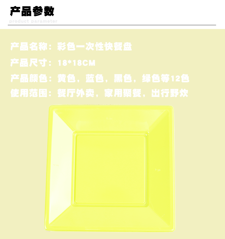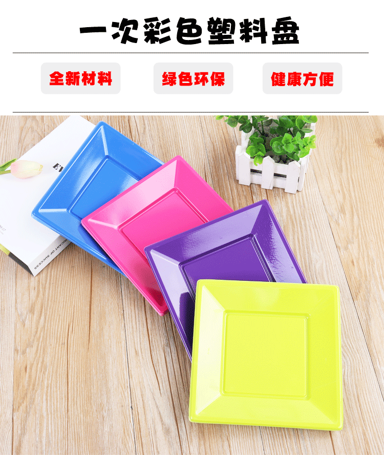 Pp Square Dish Color Cutlery Plate Birthday Dinner Plate Plastic Fruit Plate Party Cake Plate