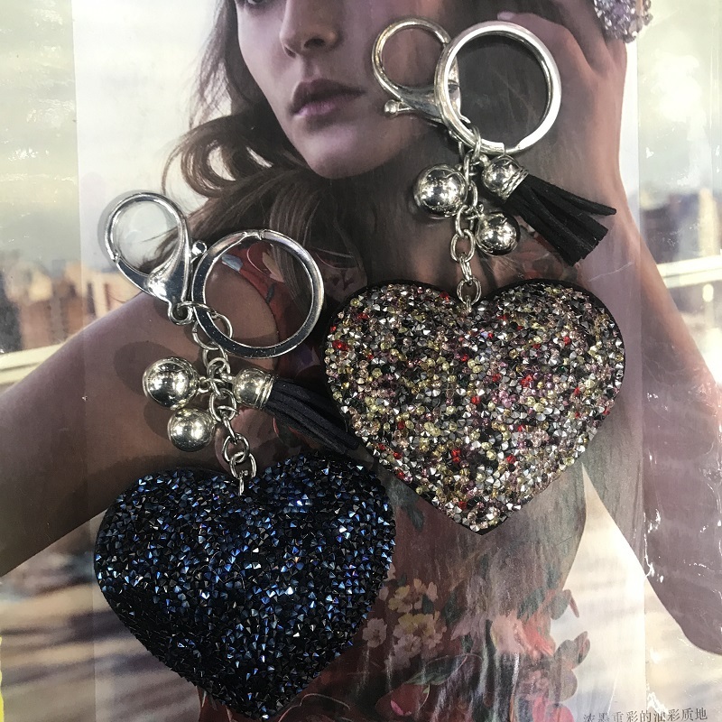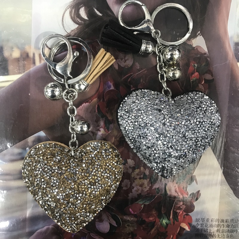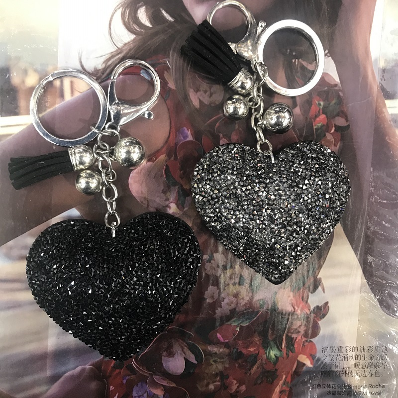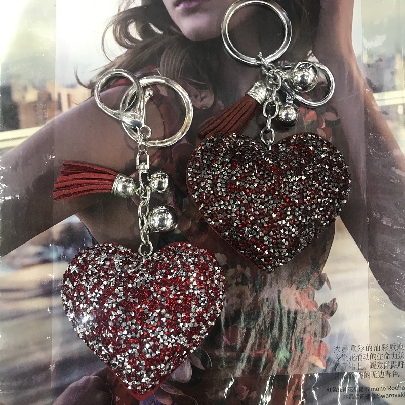 big peach heart no. 8 two pointed rhinestone korean velvet/pu leather keychain pendant