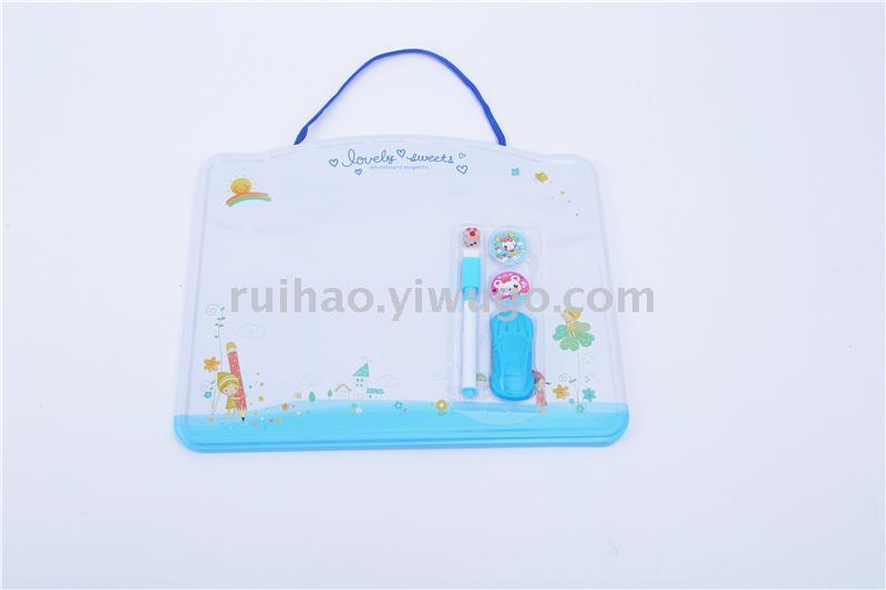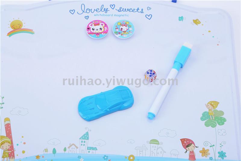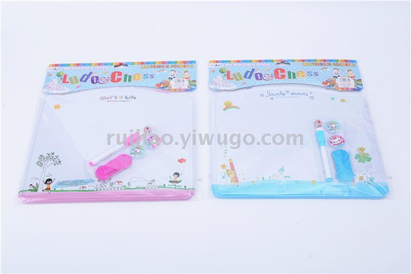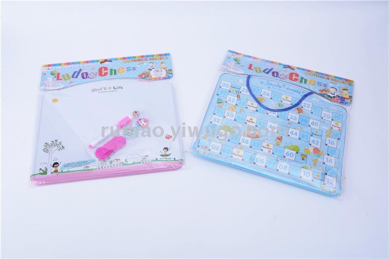 About Product:010# tinplate integrated writing board, it is a 2-purpose writing board, with whiteboard marker on the front, it can be repeatedly written and wiped with Aeroplane Chess patterns on the back, and it is equipped with a dice, 2 pieces of bead, which is for children to learn, the first choice stationery for entertainment.